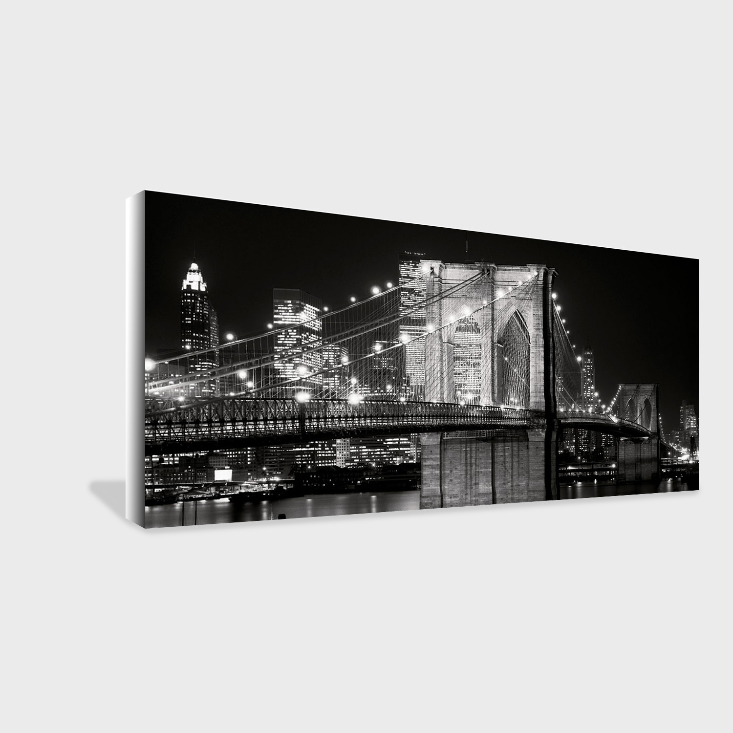 The energy of city life is masterfully portrayed in "Brooklyn Bridge at Night" by Jet Lowe. The artist's sweeping photograph captures the magnitude and drama of this historic structure. This picture adds theatre and texture to a white wall.