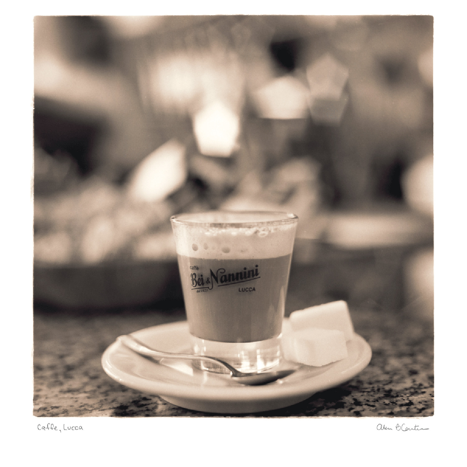 Italy beckons in this charming print by Alan Blaustein. The artist offers a nostalgic portrait of Italian culture with this sumptuous snapshot. Enjoy the flavor of the drink pictured.