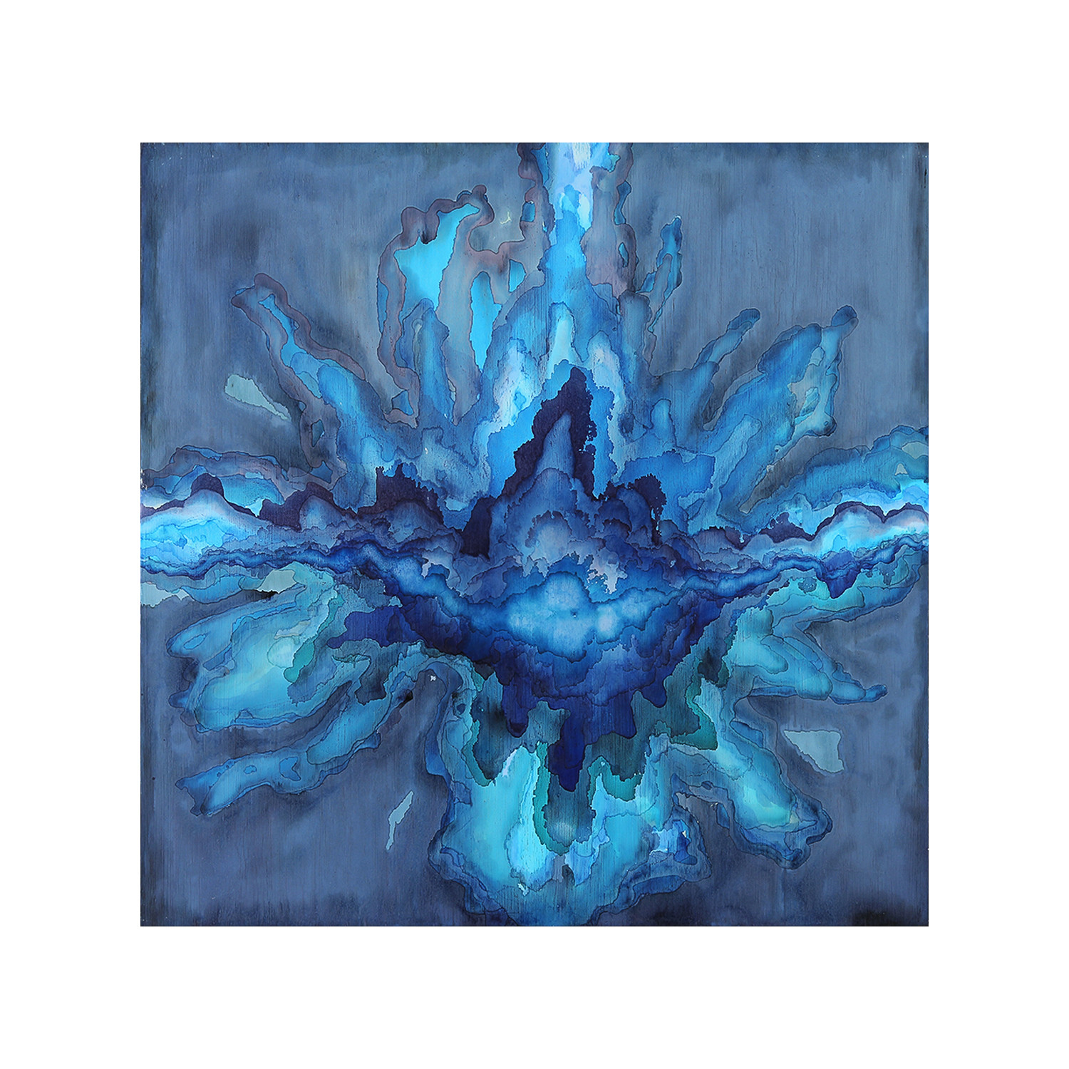 Channel is a bold, pigmented piece that brings the viewer into the depths of the water with lines that bloom like the splash of a diver. These beautiful blue, aquamarine and inky navy hues are a wonderful way to add serenity to any space.