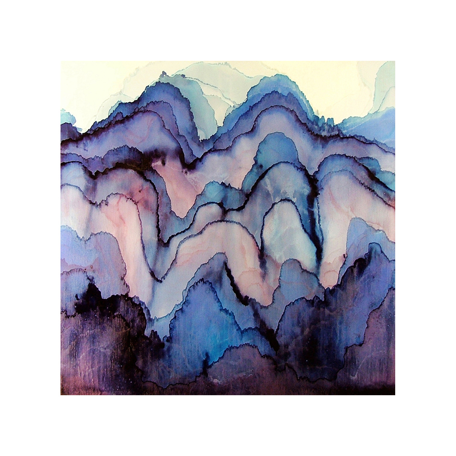 Entering The Stream layers mountains of deep indigo, rosy red and pale slate to crate an abstract landscape. Whether you envision a lively stream, challenging mountain range or simply get lost in the movement of the lines, this pensive piece is a wonderful way to add visual interest to any wall.