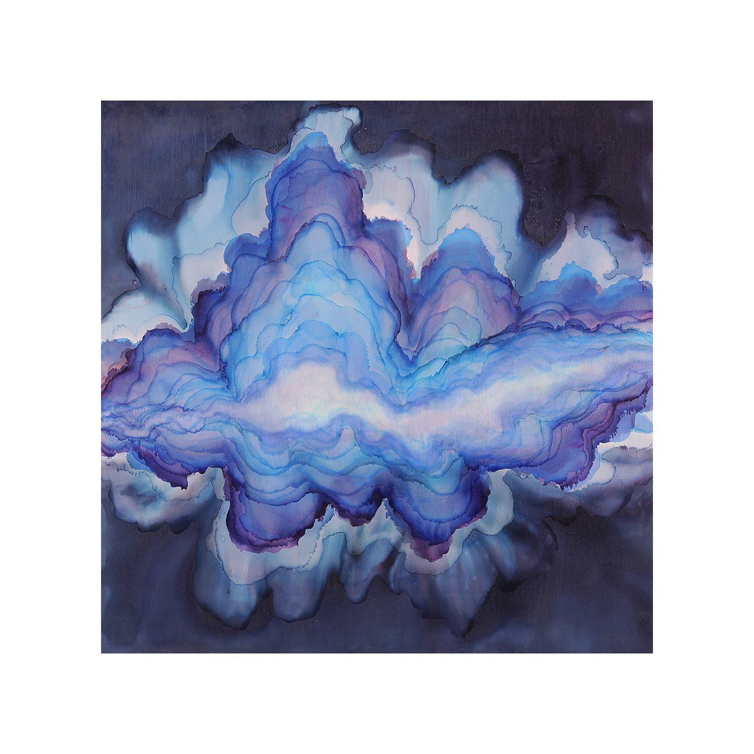 Indican is a soft, serene piece with lines that emanate energy from the center. Calling to mind the ebb an flow of the sea or the opening of a cocoon, beautiful stormy blue, indigo and periwinkle hues saturate this piece.