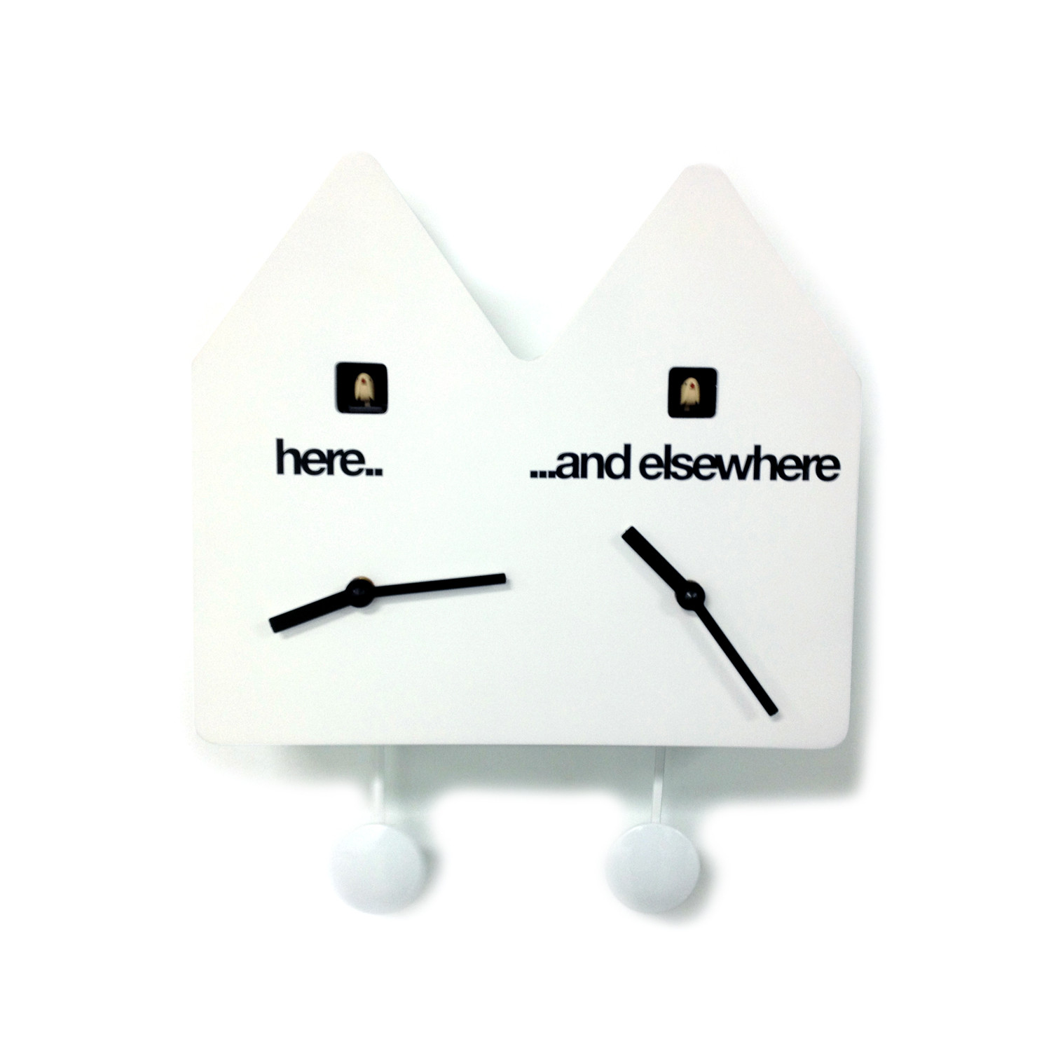Double Q is a fun play on the world clock where you can set two different times from two different places with 2 cuckoo birds and two pendulums. The cuckoo chirp is controlled by a light sensor and switched off automatically during the night.