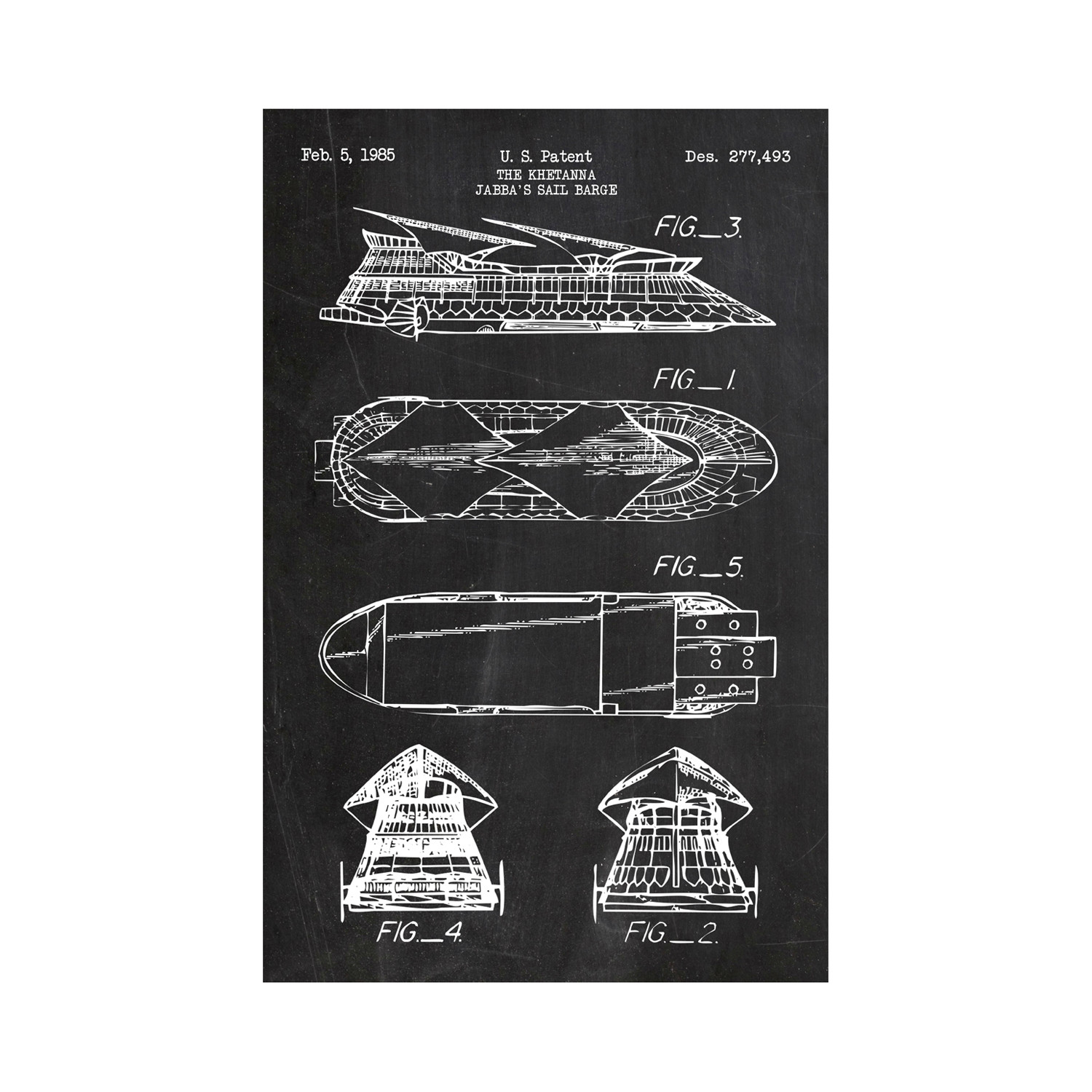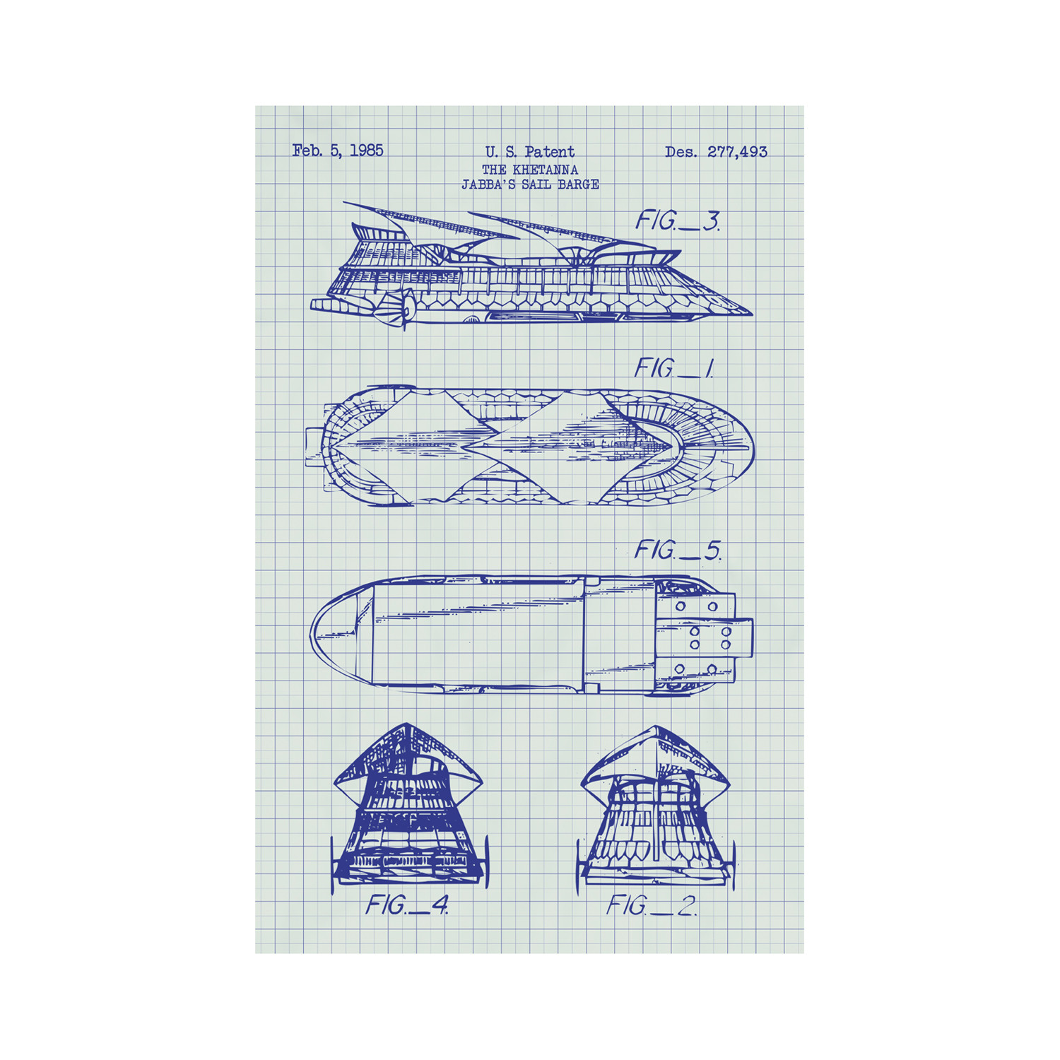 Rendered with acrylic ink on top of thick, high quality 100 lb. paper, this Star Wars patent print of "The Khetanna" Jabba's Sail Barge has stemmed from the inspiration of the original creators! Screen printed artwork can be identified by its thick raised ink, which seems to catch the eye from every angle. By hand printing every order, Inked and Screened’s team of artists create the prominent depth of field and texture that is found on each poster