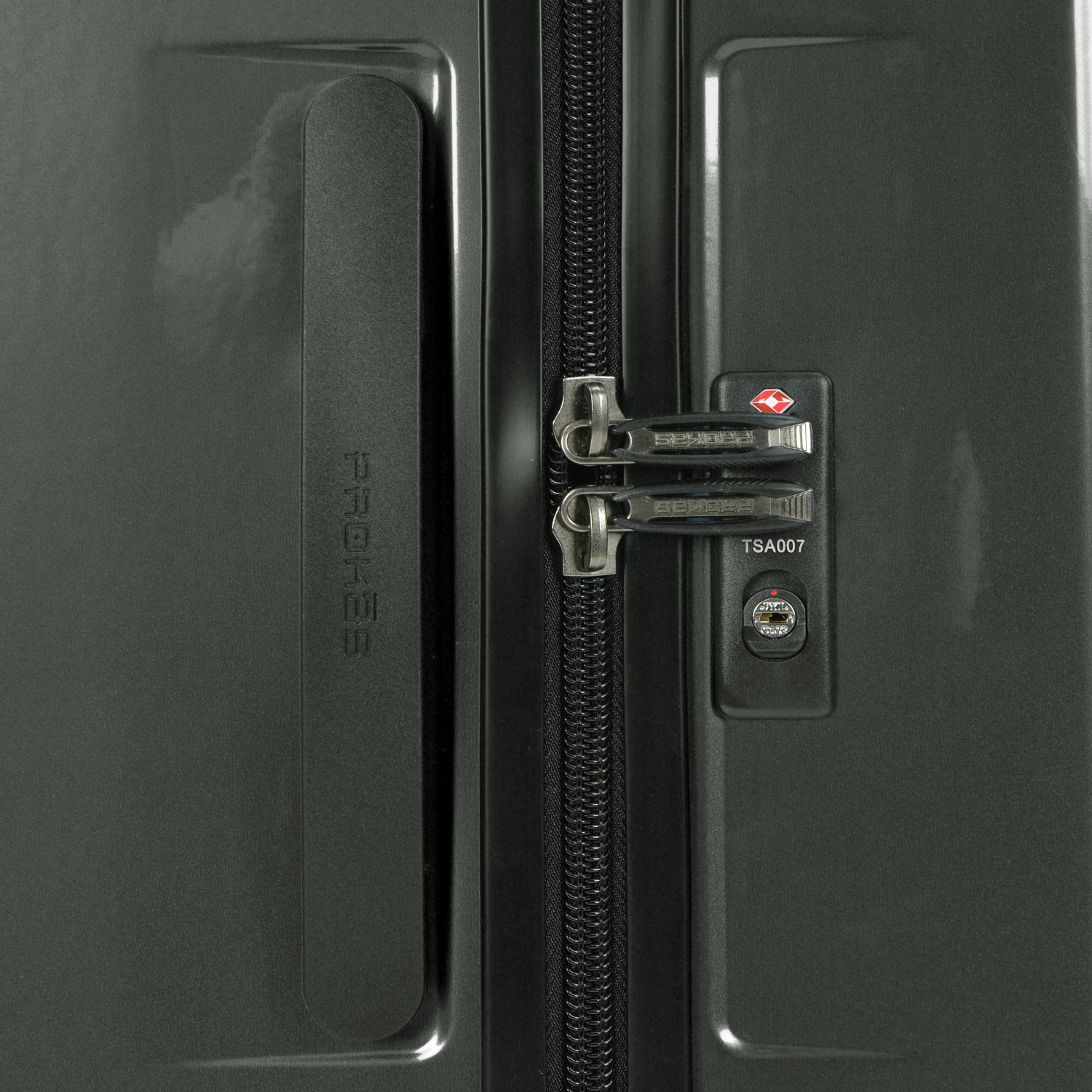 Unlike a regular suitcase, PROKĀS® trunk-style luggage is designed to meld the crucial elements and to achieve the perfect balance of form and function. Every inch of the case has been carefully engineered to deliver a satisfying experience imbued with style. Thrown out are the standard handles and wheels, which have been replaced with the patent-pending T-Cruiser Handle and Cyclone 360 Degree Spinner Wheel System, inspired by jet engines to provide better comfort and handling while improving the consumer experience. Ergonomic and TSA-compliant, this 100% polycarbonate luggage is a revolution in ease of travel.