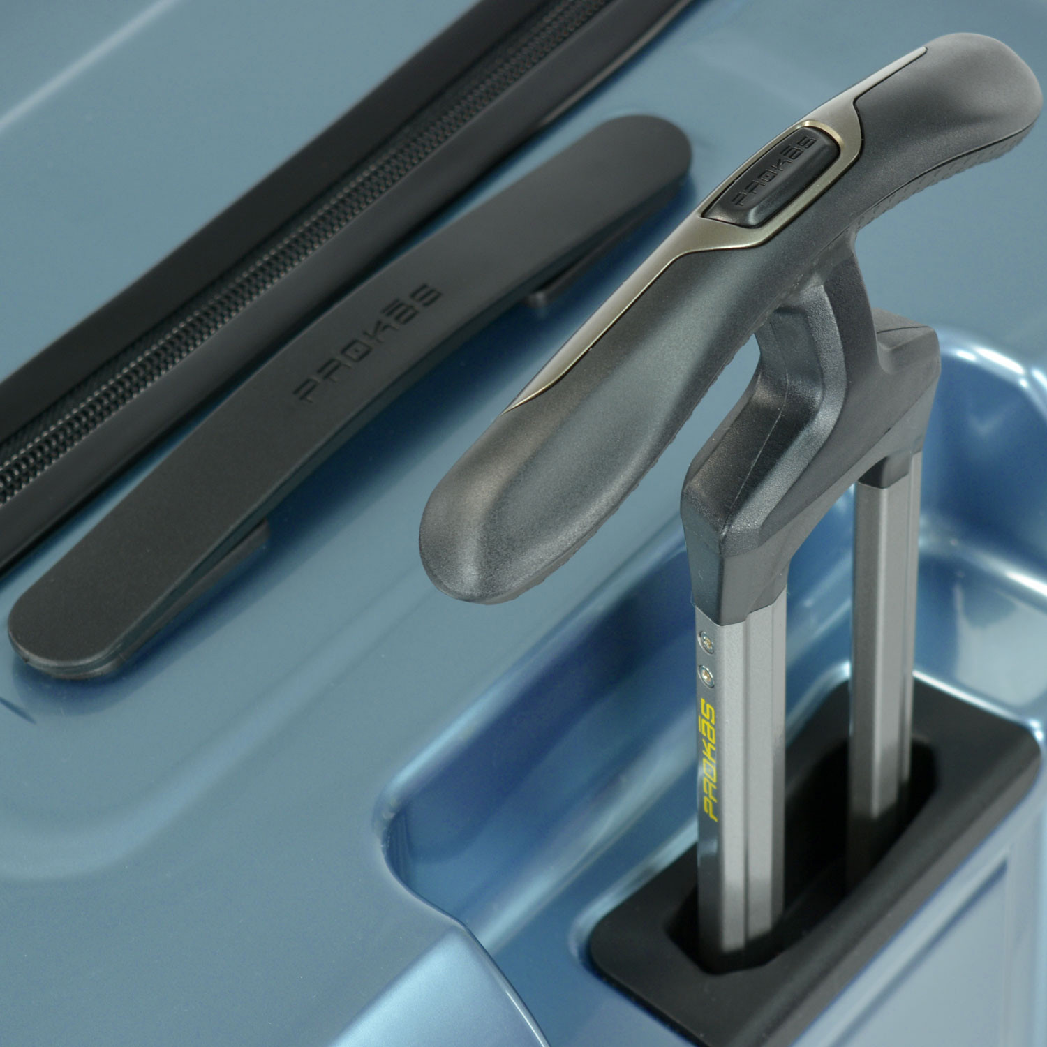 Unlike a regular suitcase, PROKĀS® trunk-style luggage is designed to meld the crucial elements and to achieve the perfect balance of form and function. Every inch of the case has been carefully engineered to deliver a satisfying experience imbued with style. Thrown out are the standard handles and wheels, which have been replaced with the patent-pending T-Cruiser Handle and Cyclone 360 Degree Spinner Wheel System, inspired by jet engines to provide better comfort and handling while improving the consumer experience. Ergonomic and TSA-compliant, this 100% polycarbonate luggage is a revolution in ease of travel.