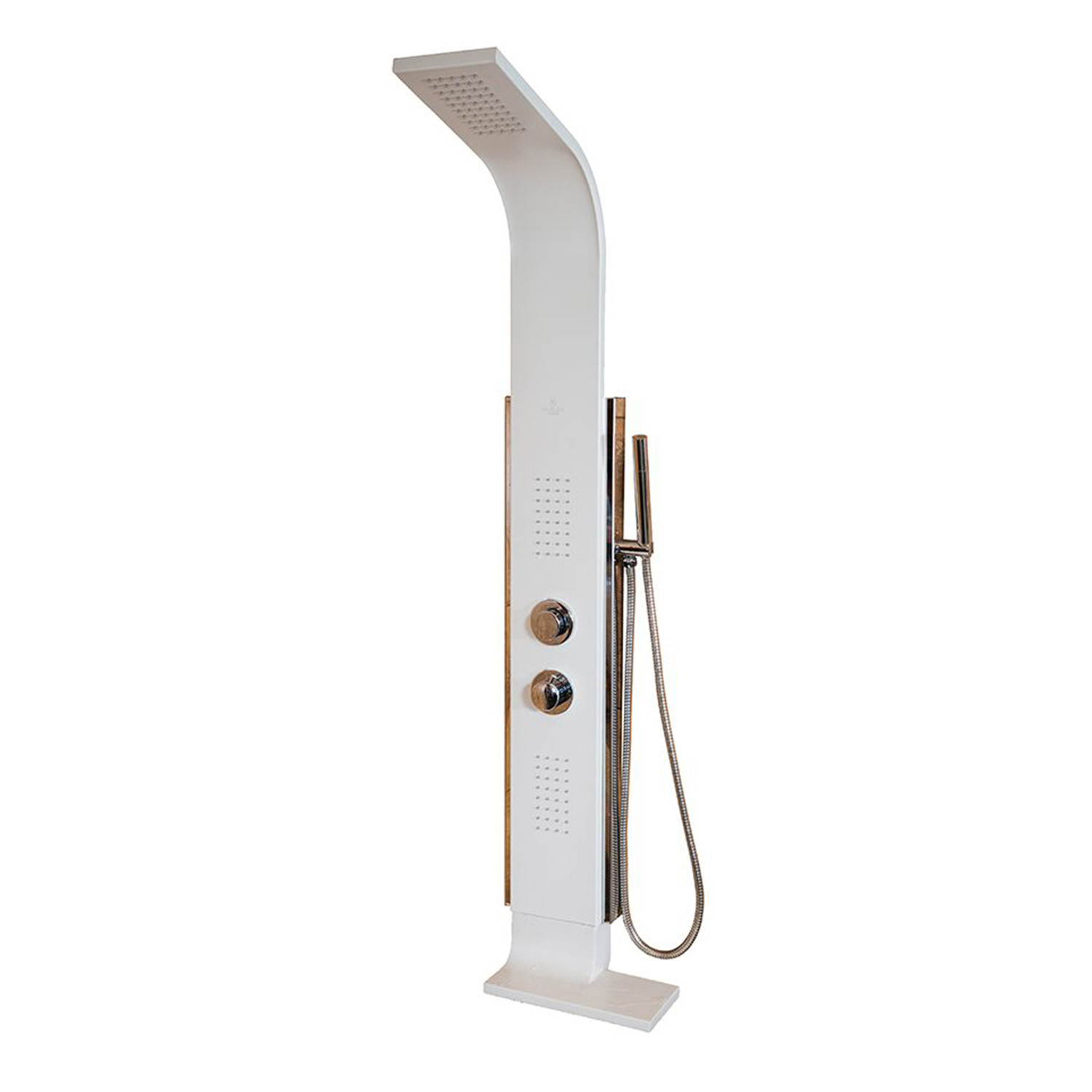 The Mirage ShowerSpa includes two oversized single-function body sprays, a sleek hand shower, a convenient shelf for shower products, and a rain showerhead. It easily turns any shower into an oasis.