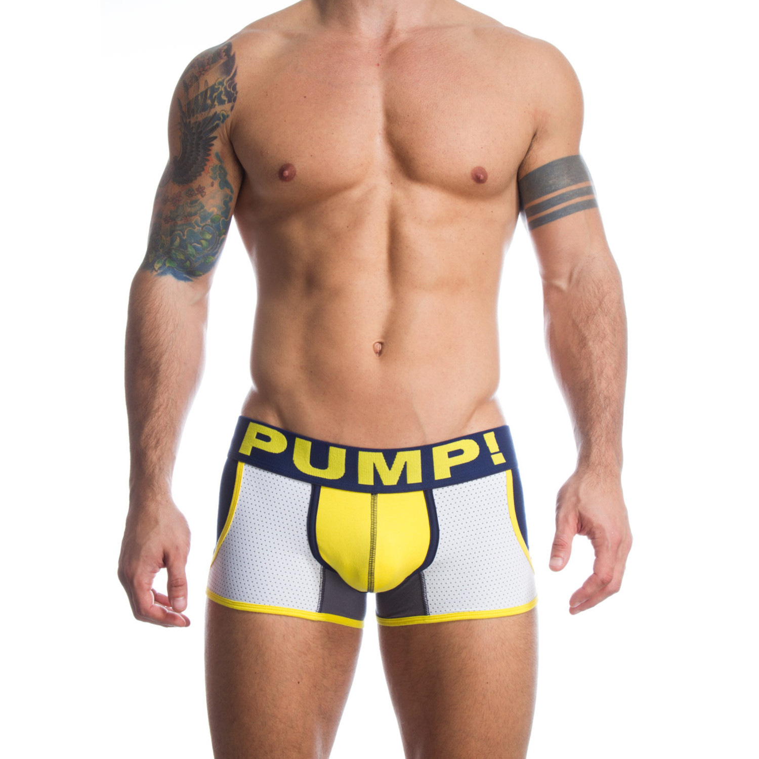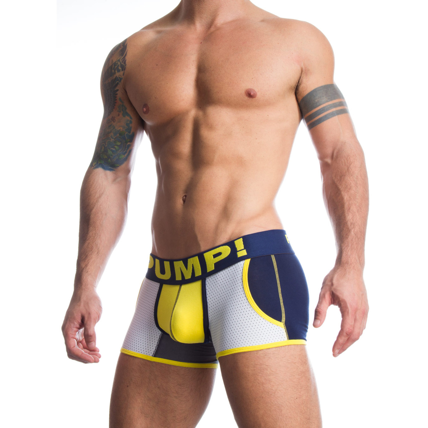 Color is everywhere. Why should your underwear be in black and white? With this fresh take on the classic boxer, it doesn't have to be. Boldly navy, yellow and grey, these boxers are perfect to wear around the house or to a beer bust at the frat house. And they have pockets! With PUMP!s, you're never going to be confused with ordinary.