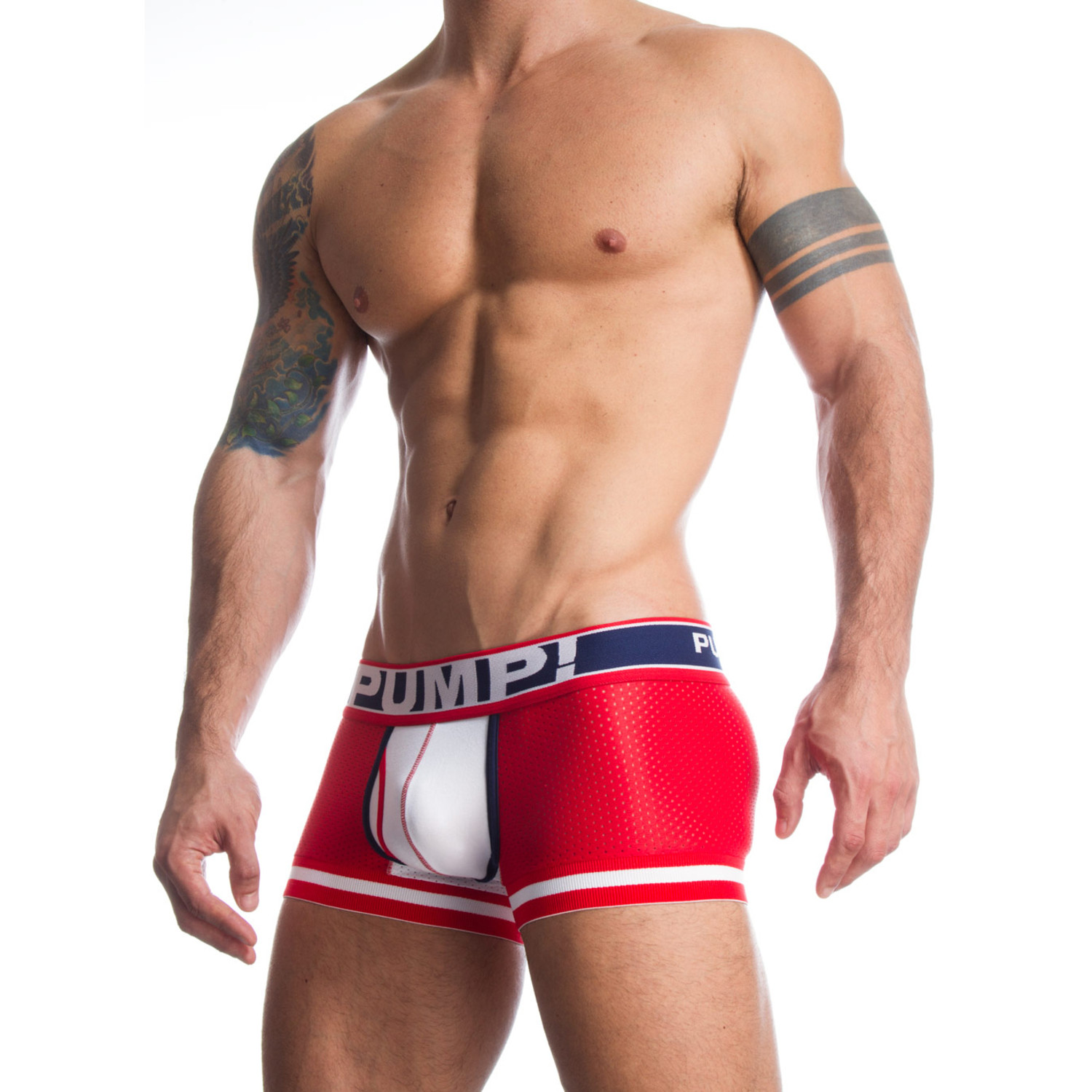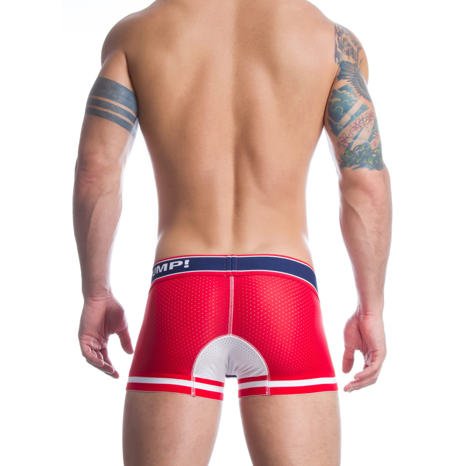 Be bold with the interplay of bright red and brilliant white, separated by blue accents, on this Touchdown Fever boxer. High-quality micromesh and a double-lined cup to give you the comfort and support you need to win on the playing field, in the boardroom and in the bedroom. Soft yet strong elastic on the waist and legs holds this body-hugging boxer in place all day.