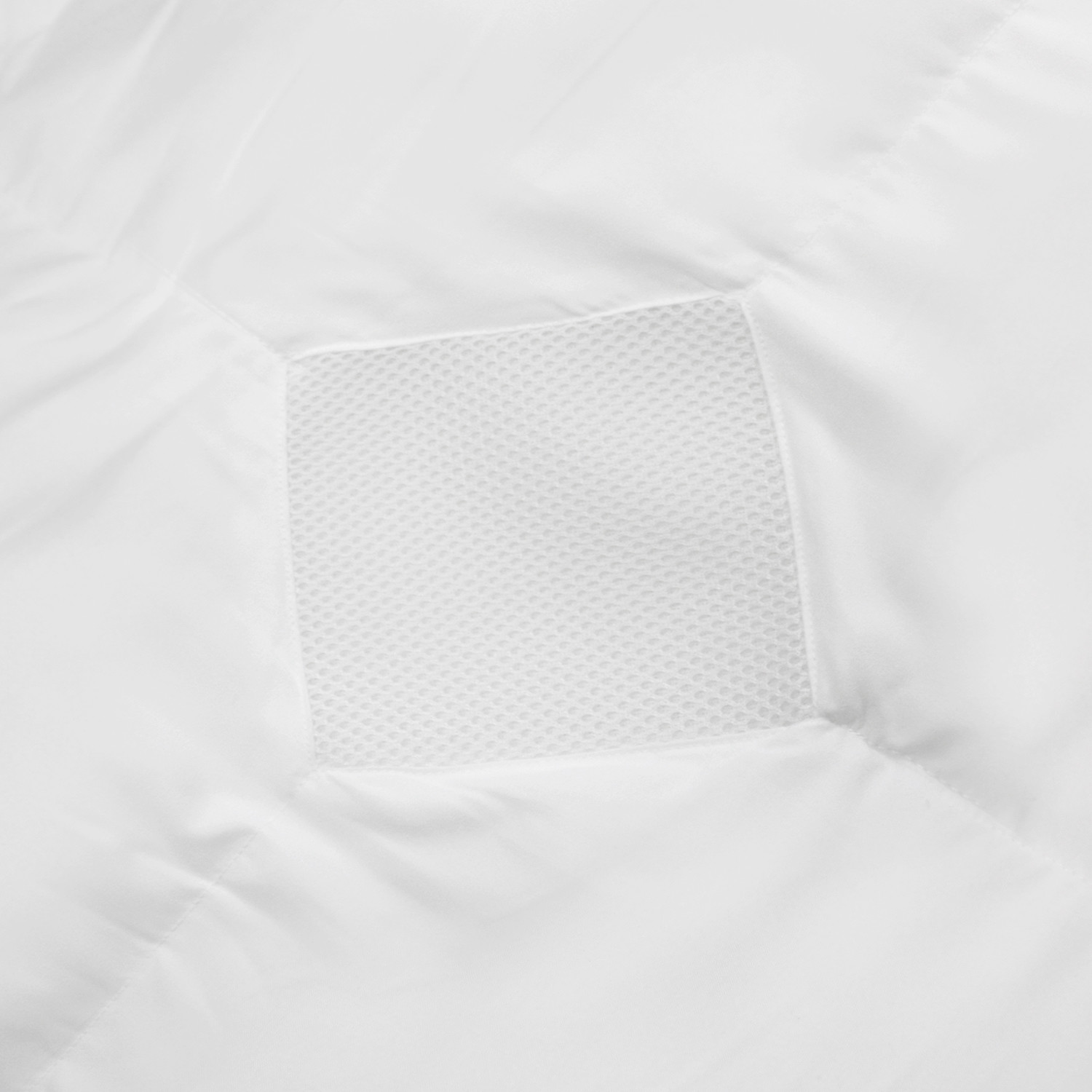 The Pure Rest Breathable Vented Down Alternative Comforter is perfect for all-seasons. The unique feature of this down alternative comforter is the 4" diamond mesh vents quilted into the box seams; these vents allow the hot air under the comforter to escape, this keeping you at the perfect, comfortable temperature all night long while experiencing lightweight warmth and coziness. Filled with specially engineered down alternative fiber for a comfortable, warm and restful sleep, this unique comforter also features a classic knife-edge finish and sewn-through box quilt stitch construction, which keeps the down alternative fill from shifting for an even layer of warmth. The microfiber cover is delightfully soft to the touch, easy care and dries quickly.