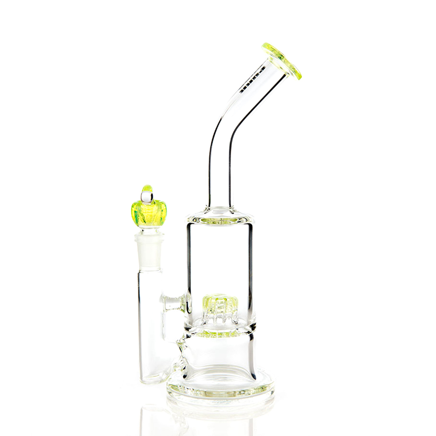 Let the Nano Matrix roll your worries away with each deep, rumbling inhalation. Smoke will first collect in the bottom chamber of the water pipe and separate through the intricate double stacked matrix perc, releasing into the large chamber above. Hand pulled, American glass color is incorporated throughout this beautiful water pipe. A perfect choice for any occasion..