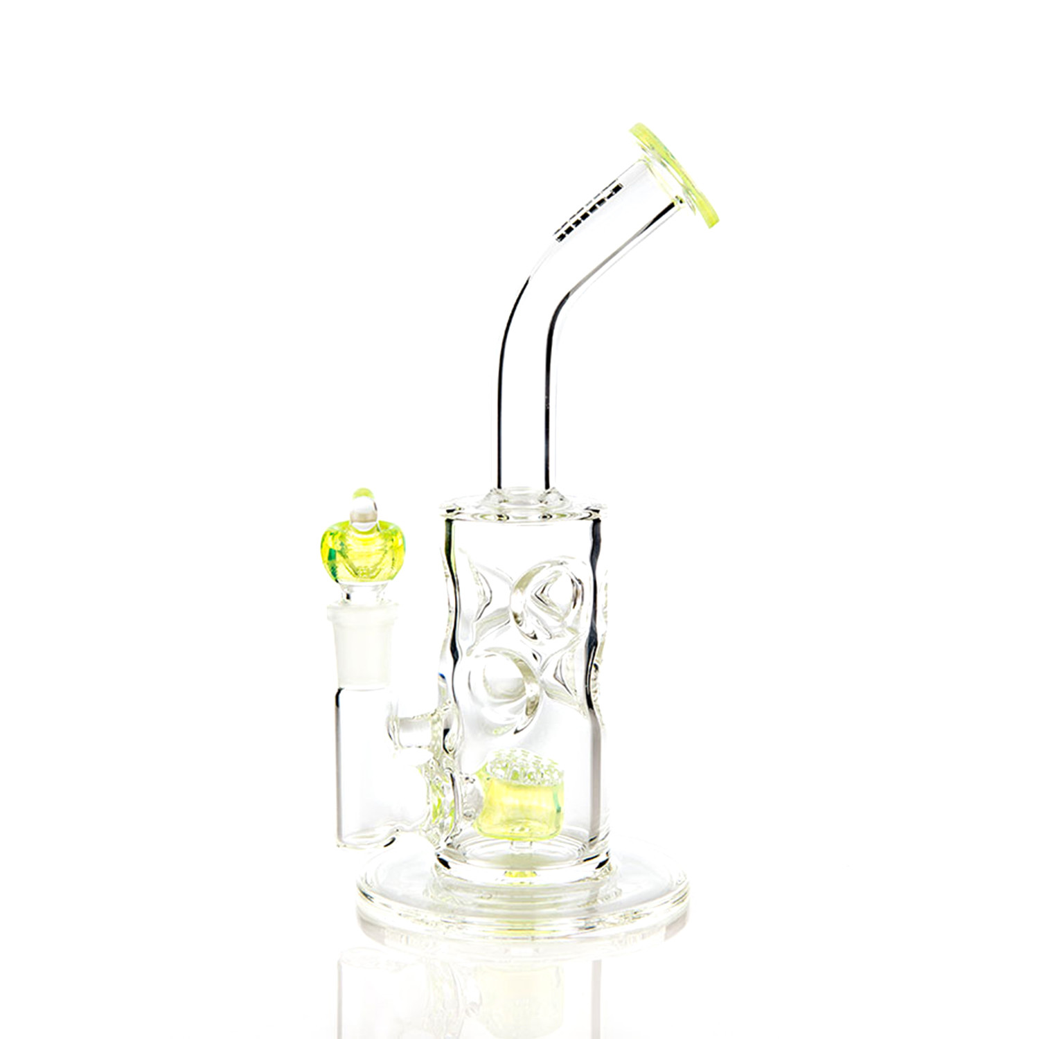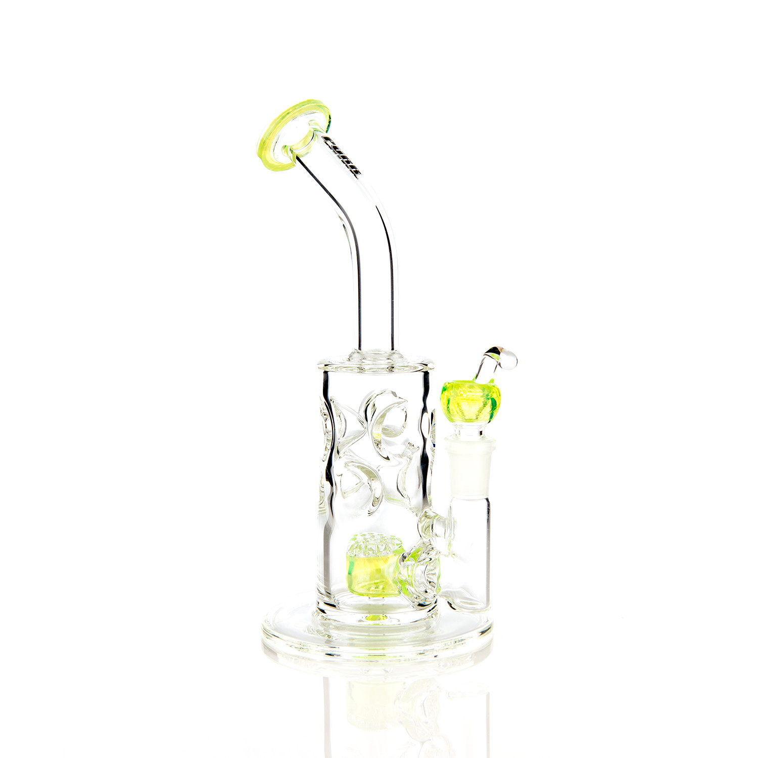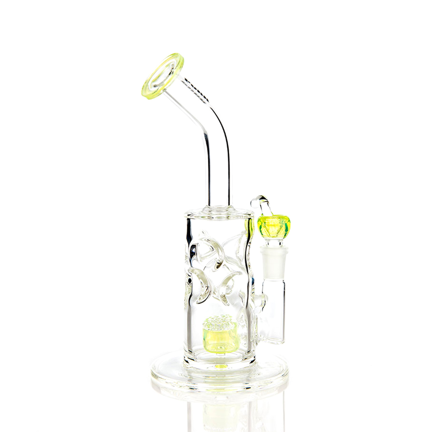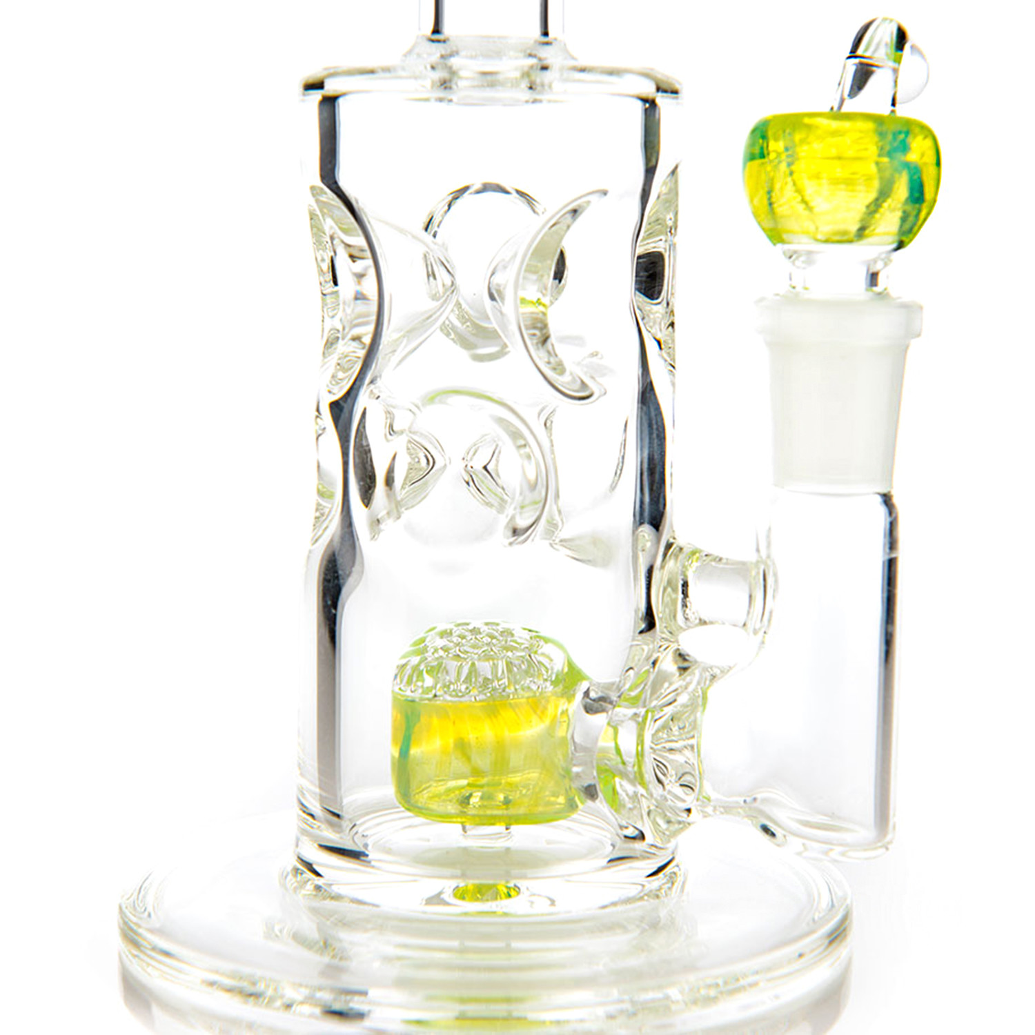Express your cool and unique style with the Swiss Honeycomb Tube. Sit back and enjoy yourself while your smoke gathers in the handcrafted honeycomb drum perc before diffusing through 19 points in the honeycomb disc perc. The stylized ice pinches will fend off any unwanted splash, allowing only cooled smoke to pass through to you. Designed with hand pulled, American glass color details. A perfect water pipe for all your good times.