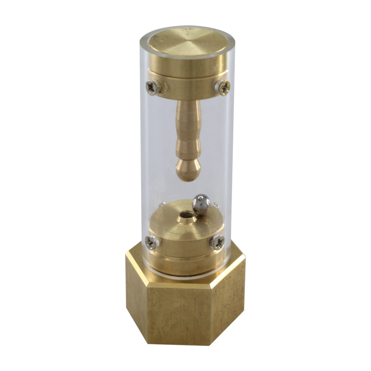 WINNER: One of two Jury First Prizes given in the Nob Yoshigahara Puzzle Design Competition 2012 at IPP in Washington, USA in 2012. Peter Hajek also considered the mechanism worthy of mentioning in his new book “Enter If You Can”. Published in 2021 this is a comprehensive look at secret opening puzzle boxes and puzzle locks throughout history up to the present day. A must-read! Size of puzzle: 80mm high and the hex nut at the bottom is 35mm across the diagonal.