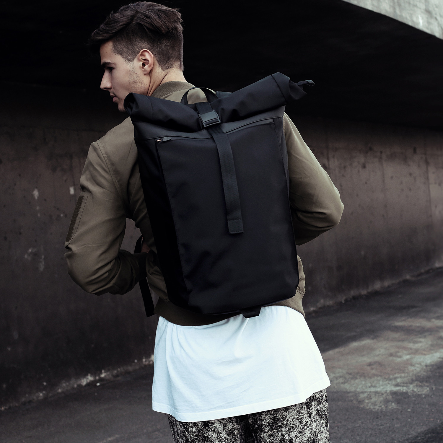 The Invisible Rolltop fits up to a 17" screen, features a magnetic quick release buckle and detachable chest strap for added stability. Everything you need to dash through the rain, it's waterproof, organized, and big enough for a full day of work or play.