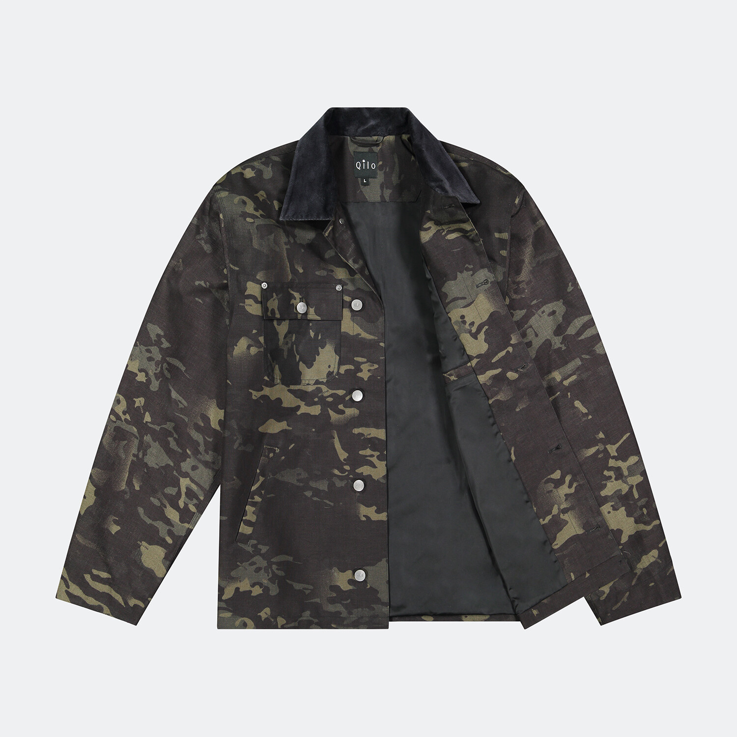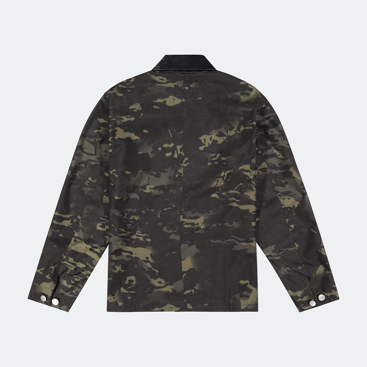 A classic chore coat offers that extra fall layer with practicality and style that's still up and coming. This one is made from heavyweight woven cotton with a corduroy collar, embossed buttons, and a satin lining. The details are as crisp as a late autumn evening.