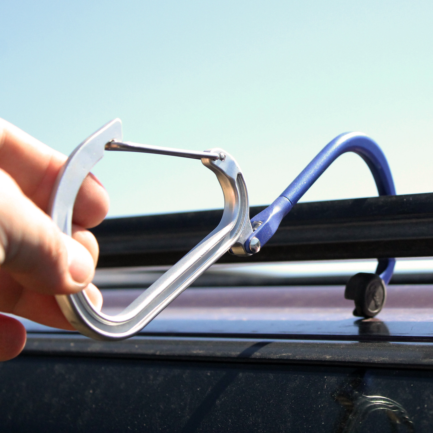 The Qlipter is the multipurpose hanging carabiner that will simplify your life in countless ways. Able to hold up to 50lbs of weight and constructed of some of the most durable materials out there, including aluminum alloy, steel, and rubber, it offers unlimited utility in one super clip! This fully functional clip opens up to a rotating hook so you can hang your stuff on any surface. Hang your backpack, lantern or gear off the ground when you're outdoors; keep your tools close when you're working; or hang your bag or luggage over a chair or off of a table when you're out on the town. The Qlipter always has you covered.