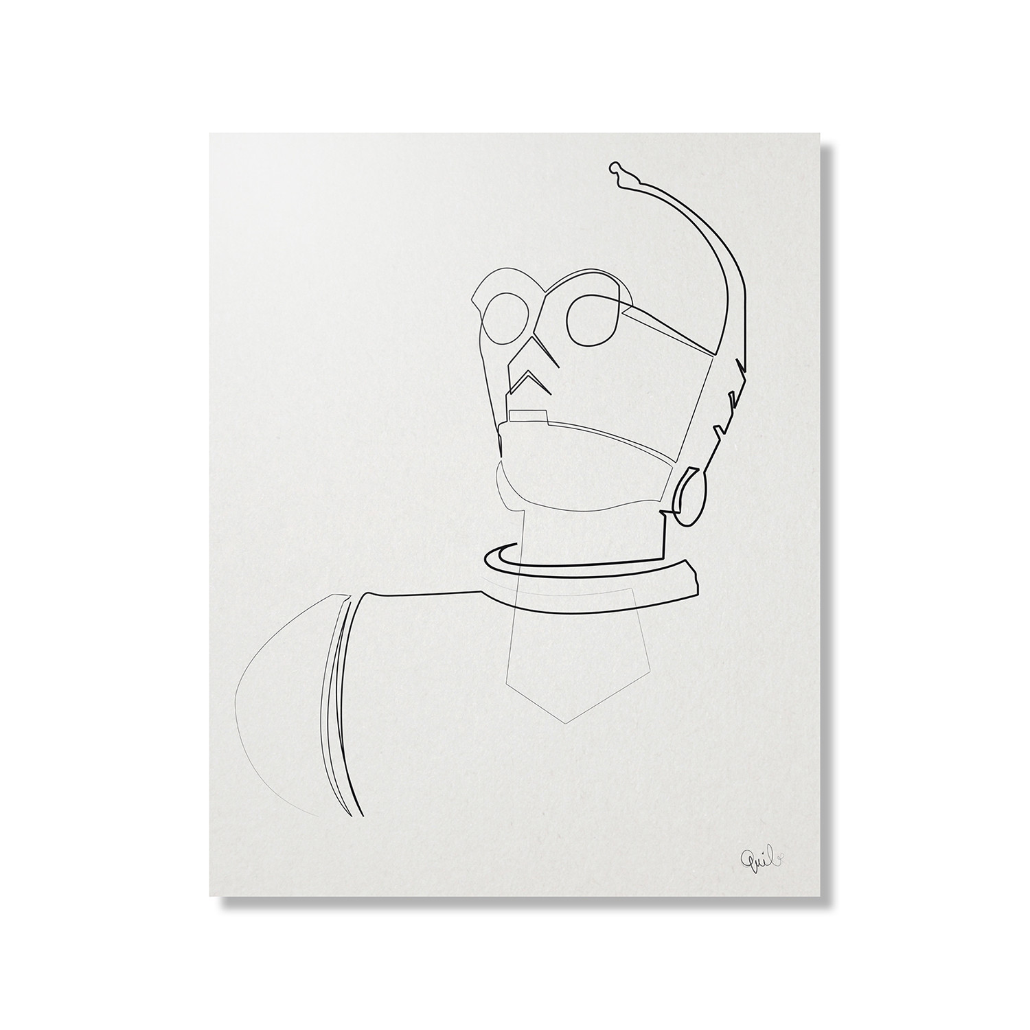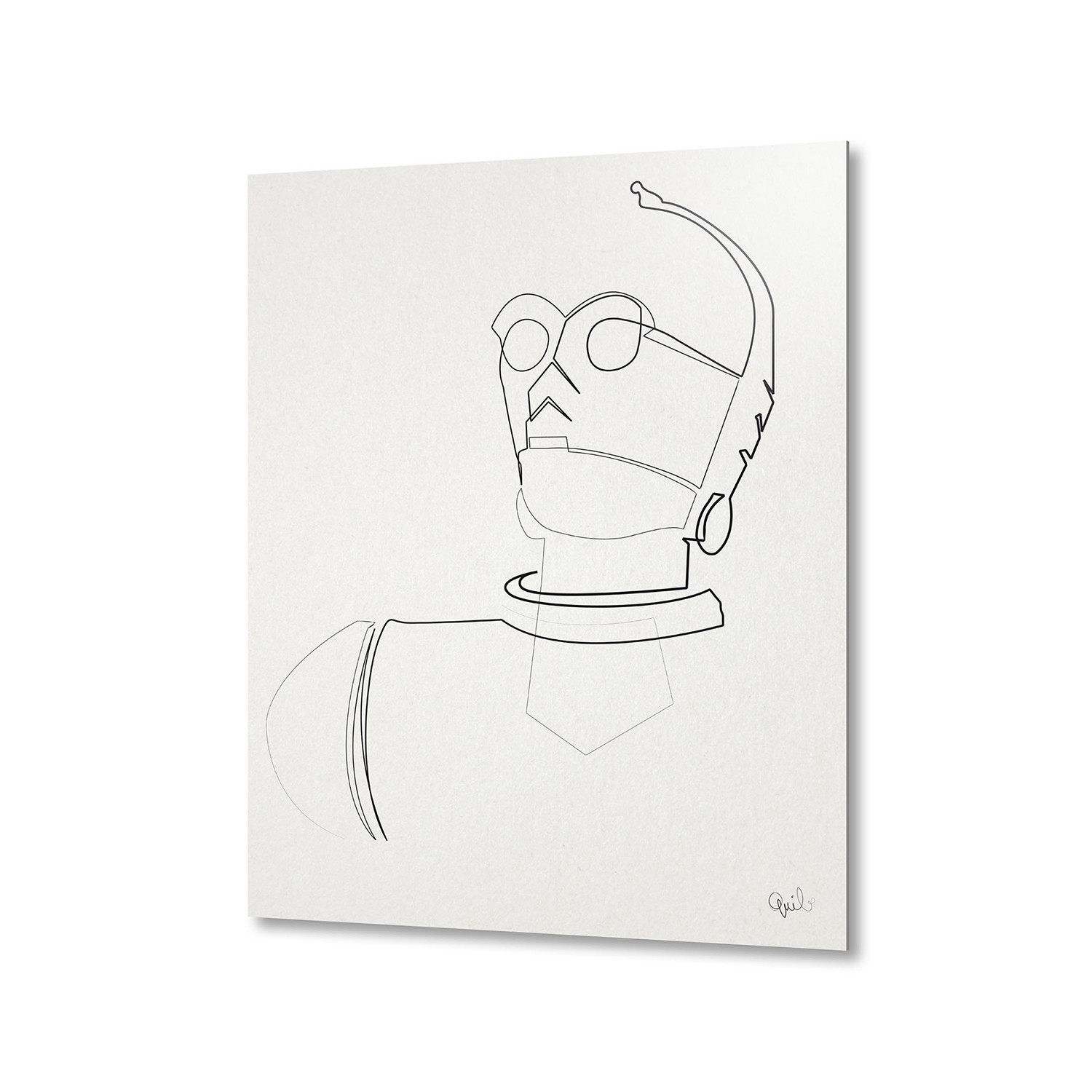 Star Wars is a classic series, but it did come out in the 1970's, and sometimes its merchandise can be a little colorful for those passionate about minimal modern design. If you like to keep things simple and inspired, but still love Star Wars, this is the unique aluminum print you've been waiting for. A signed sublimation print on an aluminum sheet, this piece is a nest-level print of C3PO, illustrated from one effortless-looking line.