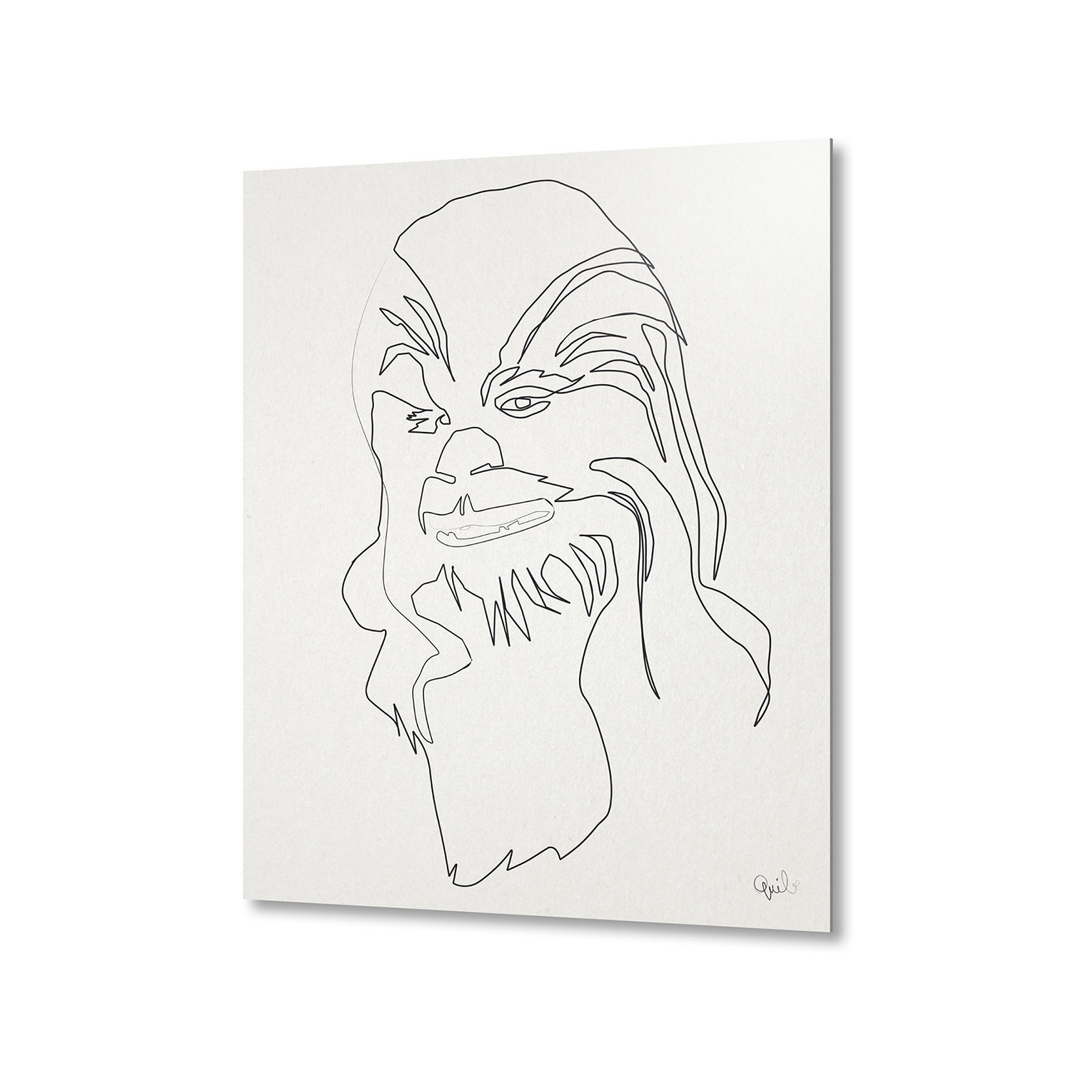 Star Wars is a classic series, but it did come out in the 1970's, and sometimes its merchandise can be a little colorful for those passionate about minimal modern design. If you like to keep things simple and inspired, but still love Star Wars, this is the unique aluminum print you've been waiting for. A signed sublimation print on an aluminum sheet, this piece is a nest-level print of Chewie, illustrated from one effortless-looking line.