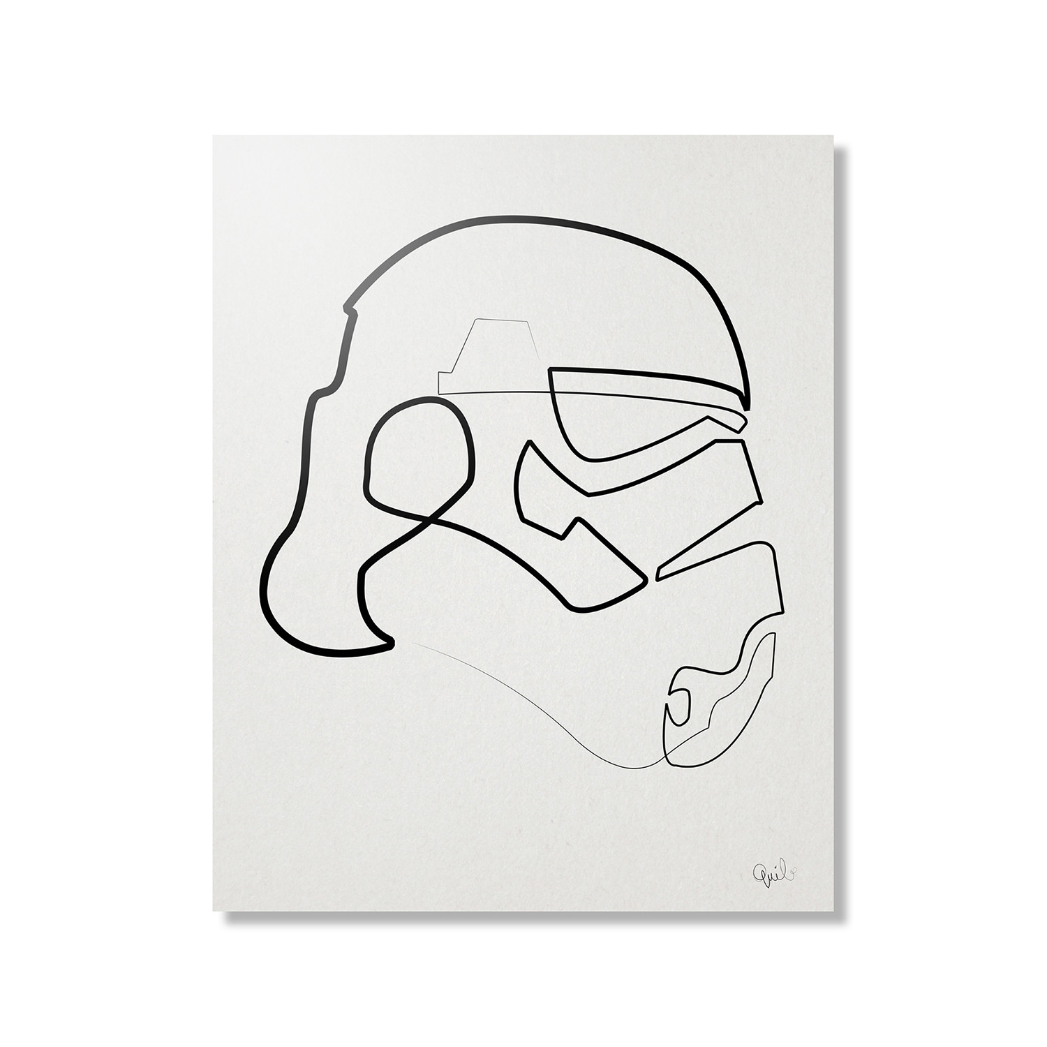 Star Wars is a classic series, but it did come out in the 1970's, and sometimes its merchandise can be a little colorful for those passionate about minimal modern design. If you like to keep things simple and inspired, but still love Star Wars, this is the unique aluminum print you've been waiting for. A signed sublimation print on an aluminum sheet, this piece is a nest-level print of a Storm Trooper, illustrated from one effortless-looking line.