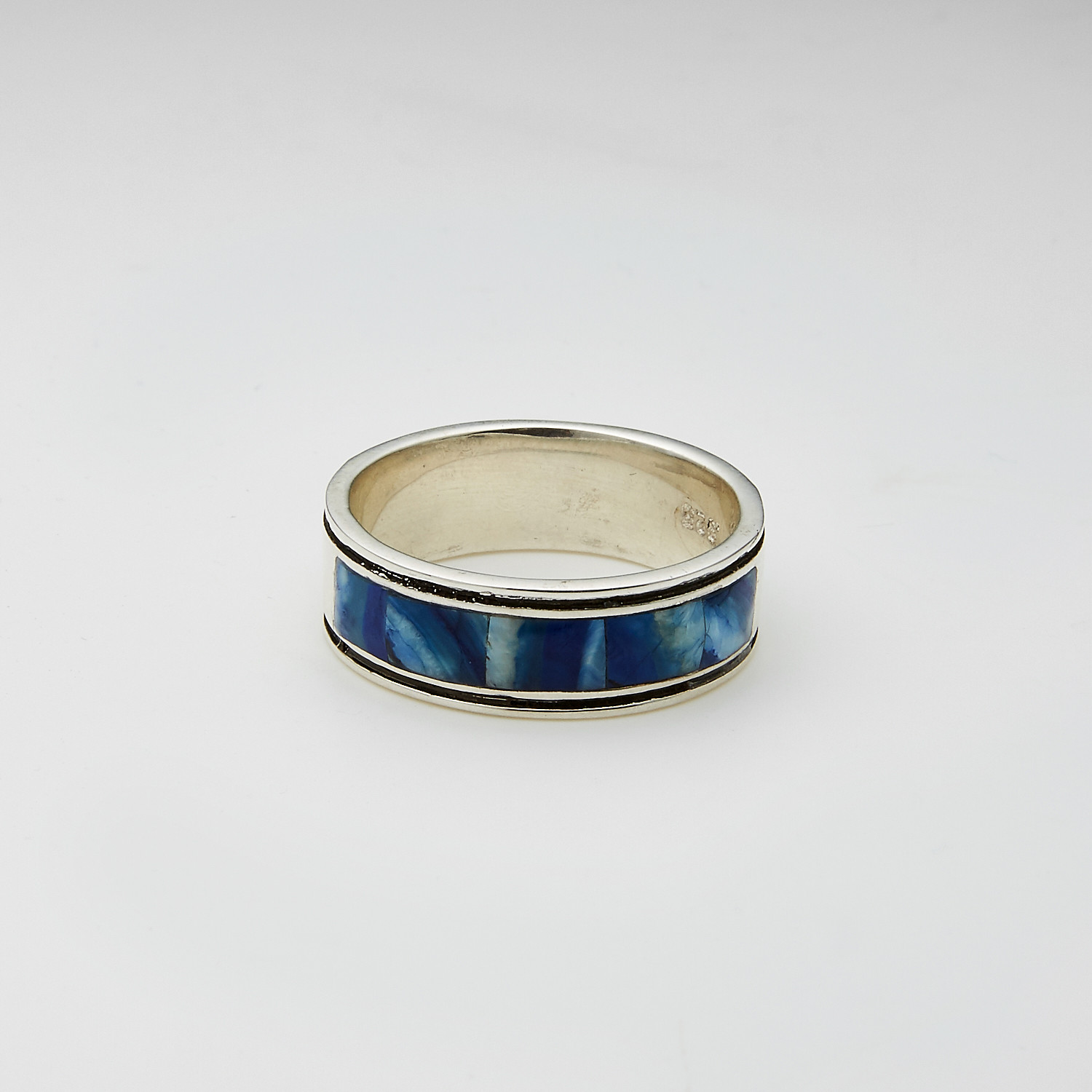 In the shadows of the Sangre de Cristo mountains of New Mexico, sits a century-old adobe ranch house where artisans craft rare and gorgeous knives, jewelry, and more by hand. This extraordinary ring from Santa Fe Stoneworks is an quintessential example of their team's skill and artistry. Featuring a timeless, sterling silver body, this ring is inlaid with genuine Wooly Mammoth tooth, resulting in a one of a kind fusion of expert craftsmanship, classic style, and unique natural beauty that adds a daring edge to any formal or casual look.