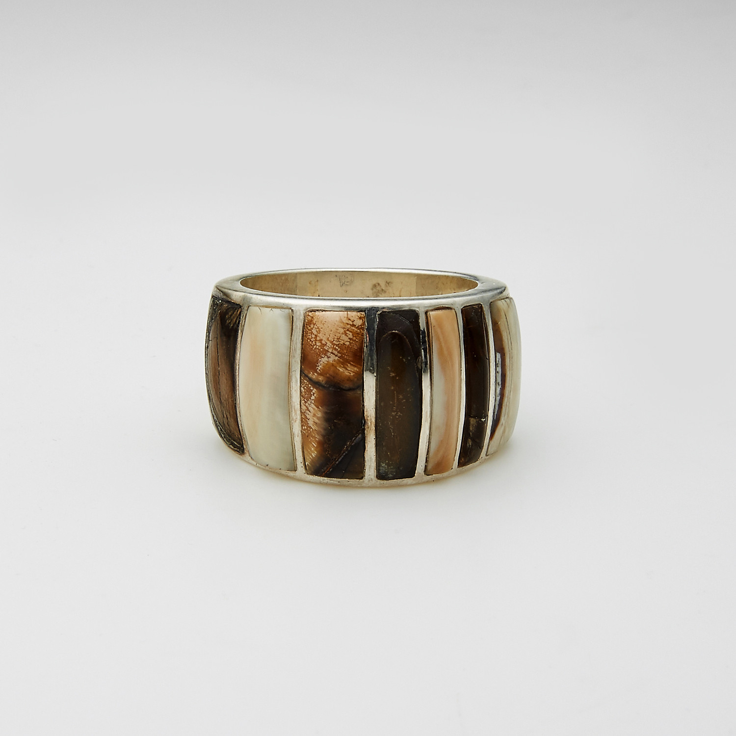 In the shadows of the Sangre de Cristo mountains of New Mexico, sits a century-old adobe ranch house where artisans craft rare and gorgeous knives, jewelry, and more by hand. This extraordinary ring from Santa Fe Stoneworks is an quintessential example of their team's skill and artistry. Featuring a timeless, sterling silver body, this ring is inlaid with genuine Wooly Mammoth tusk, resulting in a one of a kind fusion of expert craftsmanship, classic style, and unique natural beauty that adds a daring edge to any formal or casual look.