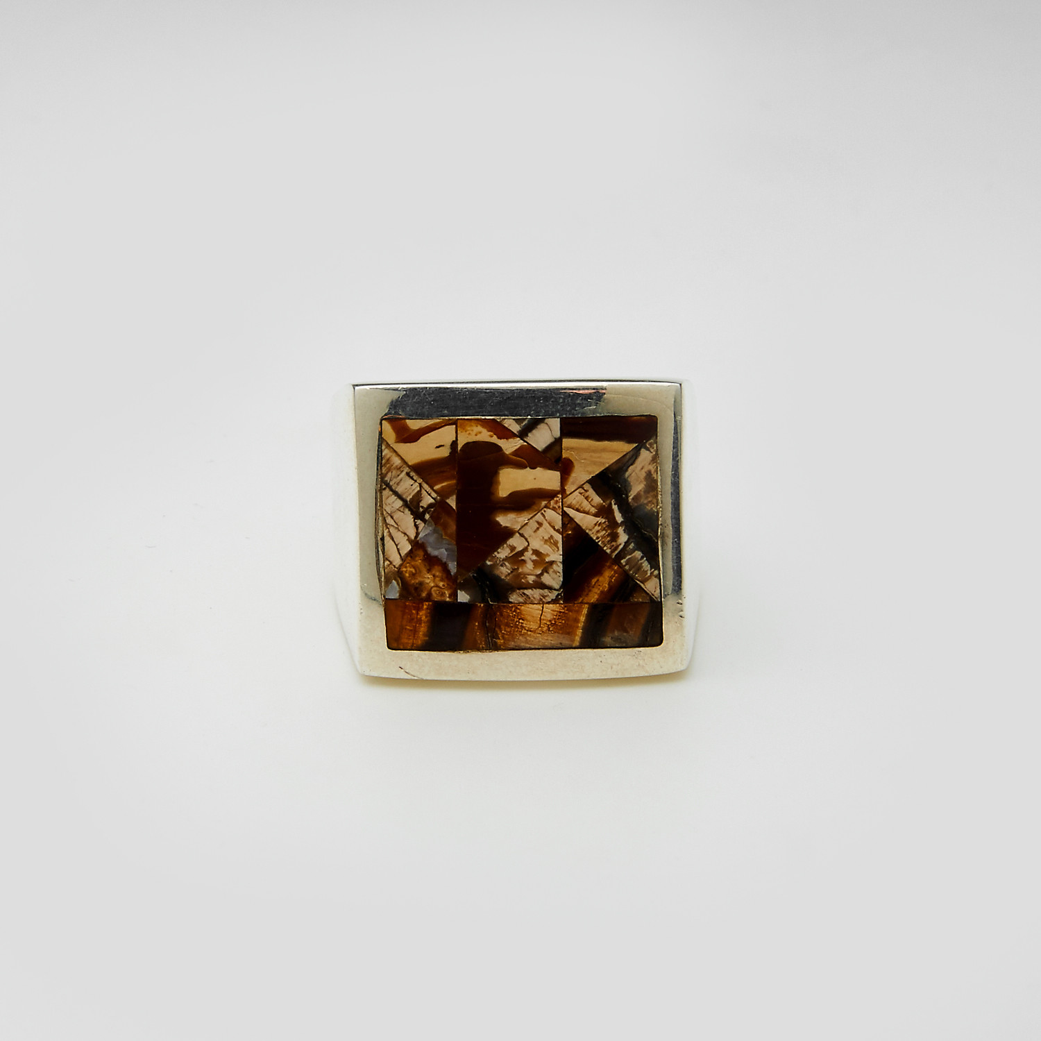 In the shadows of the Sangre de Cristo mountains of New Mexico, sits a century-old adobe ranch house where artisans craft rare and gorgeous knives, jewelry, and more by hand. This extraordinary ring from Santa Fe Stoneworks is an quintessential example of their team's skill and artistry. Featuring a timeless, sterling silver body, this ring is inlaid with genuine Wooly Mammoth tusk, resulting in a one of a kind fusion of expert craftsmanship, classic style, and unique natural beauty that adds a daring edge to any formal or casual look.