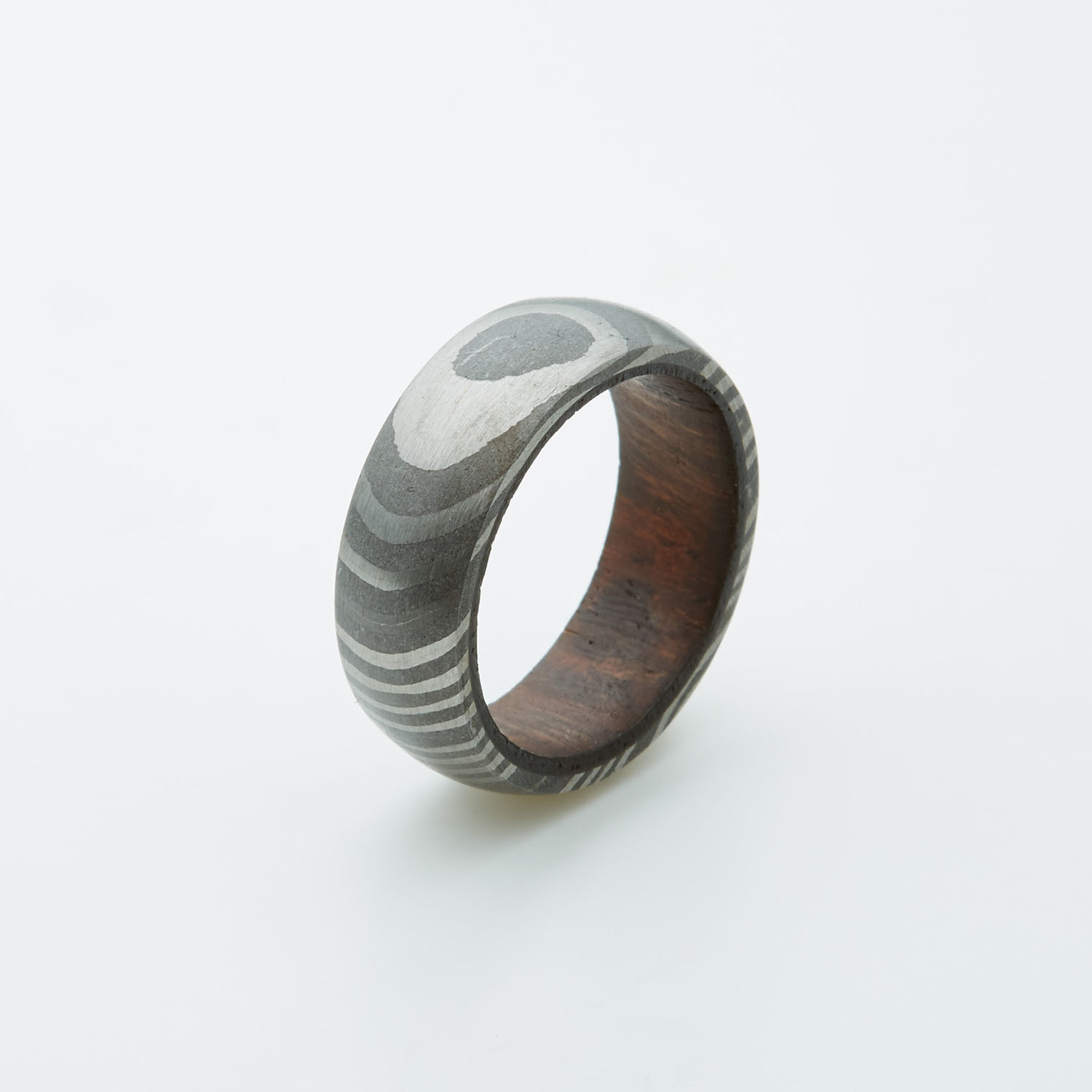 Deer Custom specializes in one of history's most enigmatic and mesmerizing materials: Damascus steel. Normally used to make knives and swords, these rings show off the unique patterns created during the forging process with a refined, masculine edge.