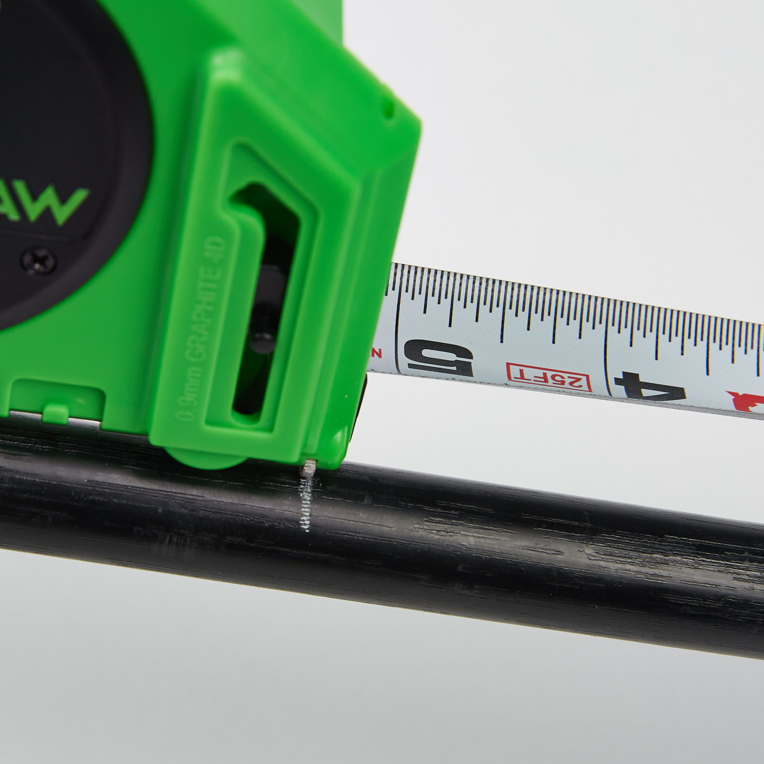 The Quickdraw Tape Measure makes big and small projects easier, faster, and more efficient with its built-in white ceramic chalk marker. The unique combination allows you to make marks on the fly, no pencil needed, and draw circles with ease.
