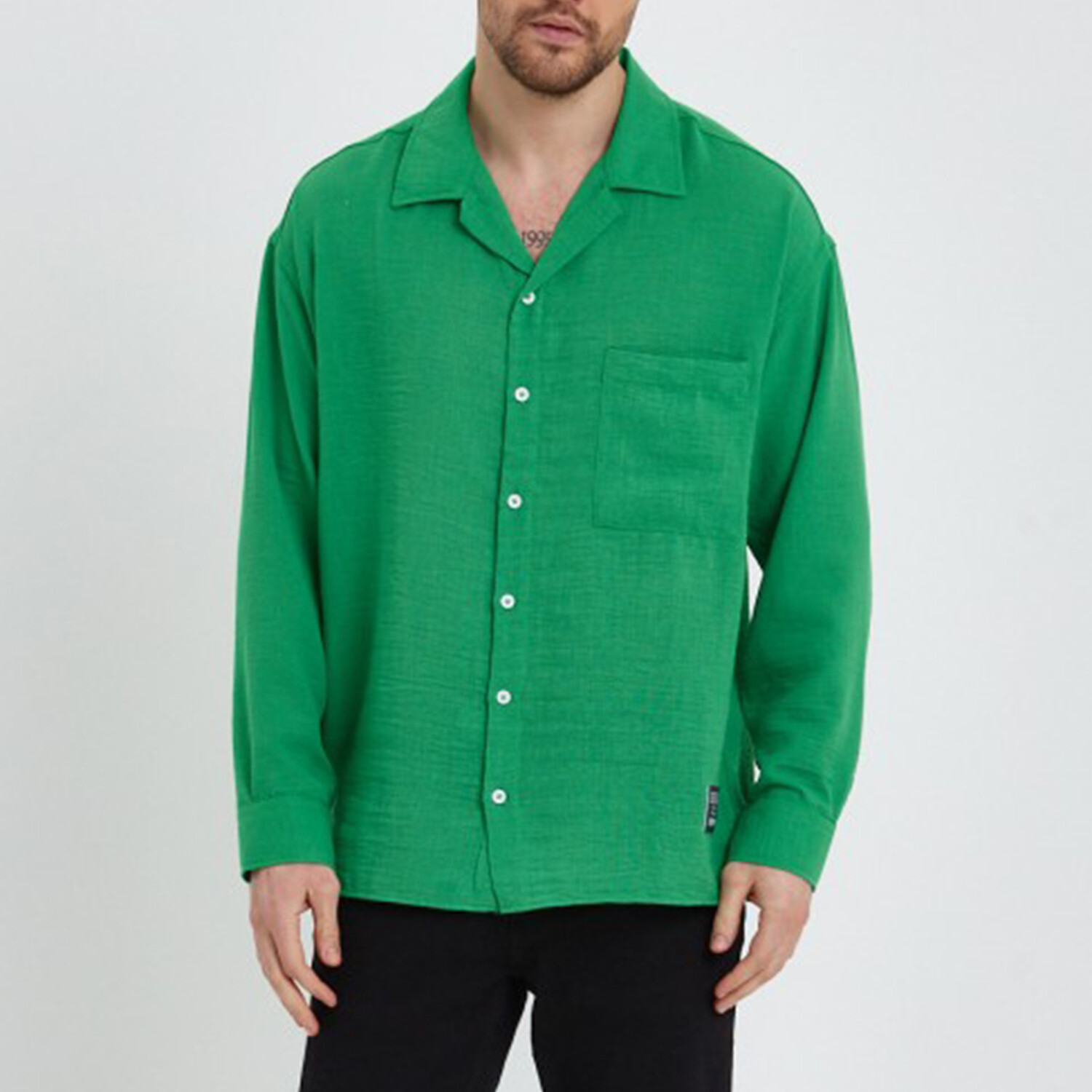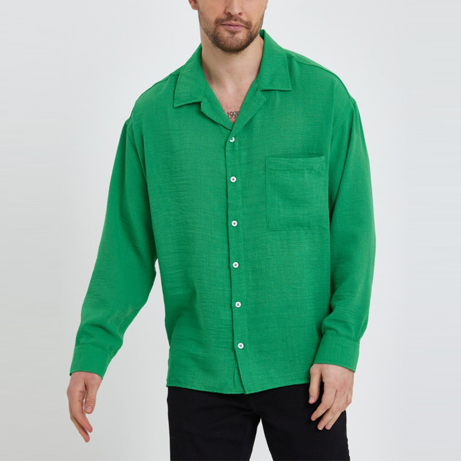 Linen Notched Collar Button-Up Shirt // Green