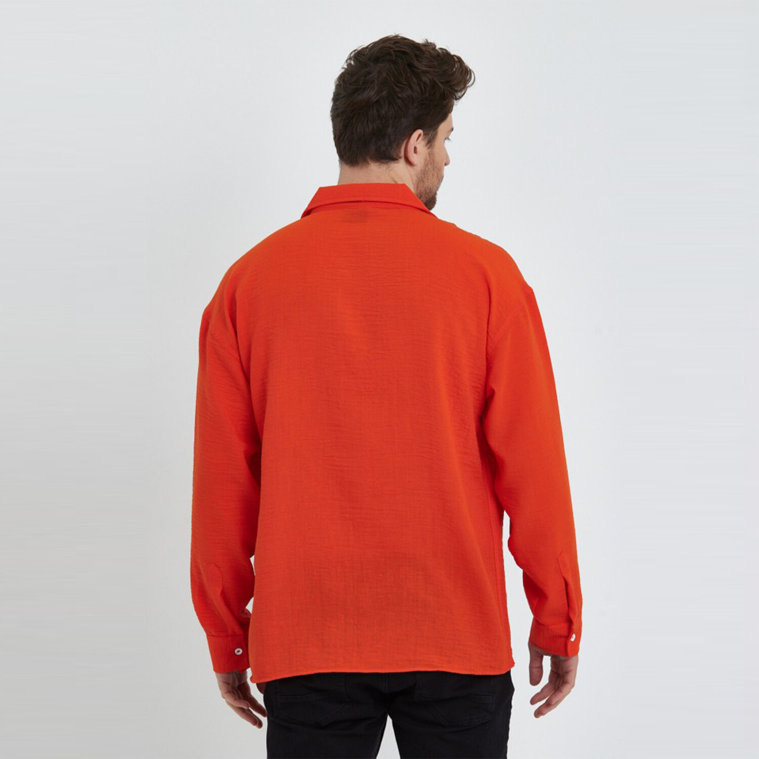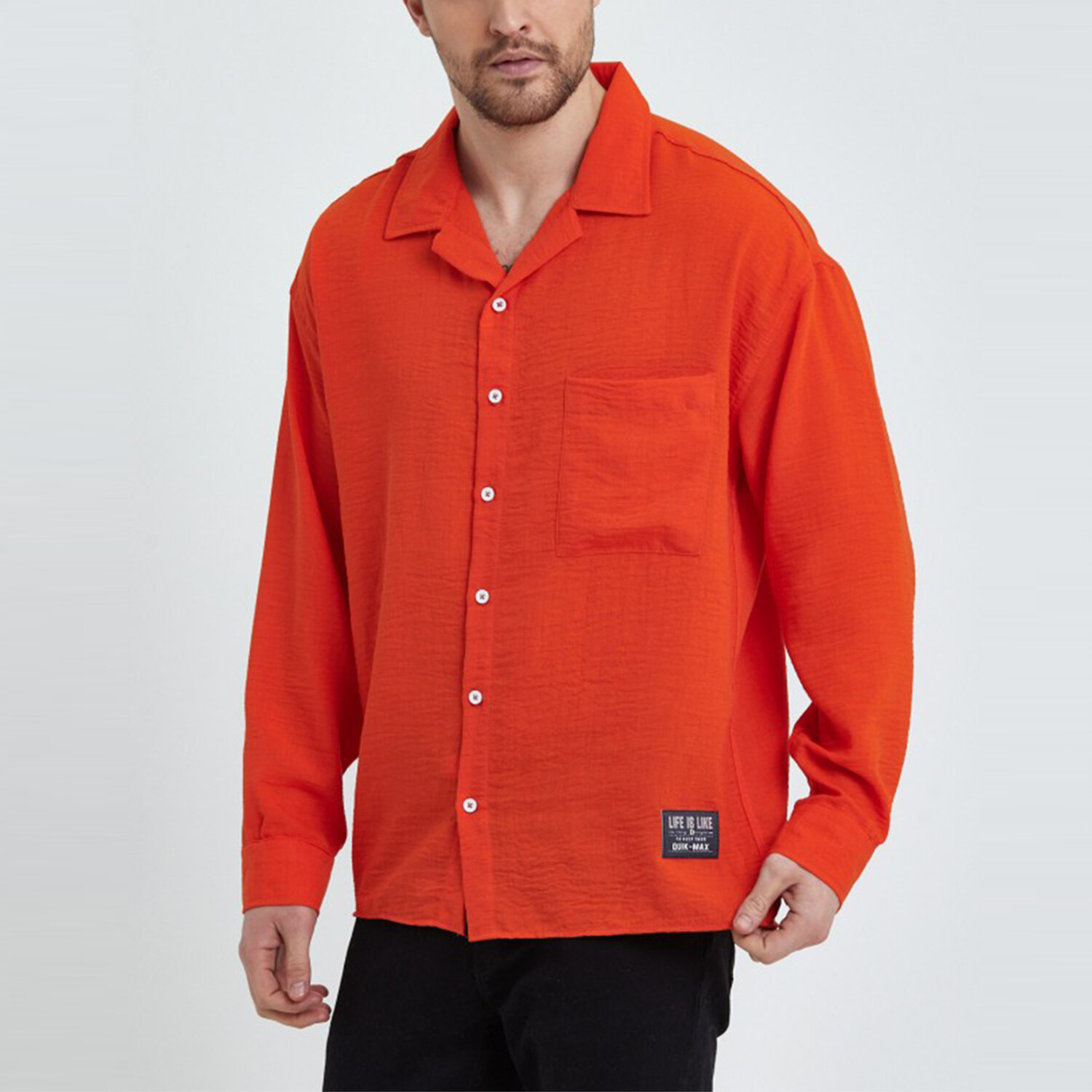 Linen Notched Collar Button-Up Shirt // Orange