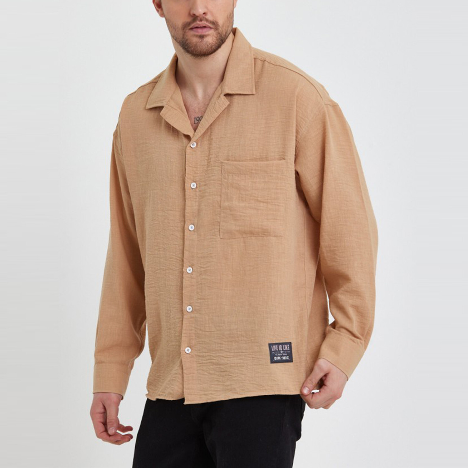 Linen Notched Collar Button-Up Shirt // Soil