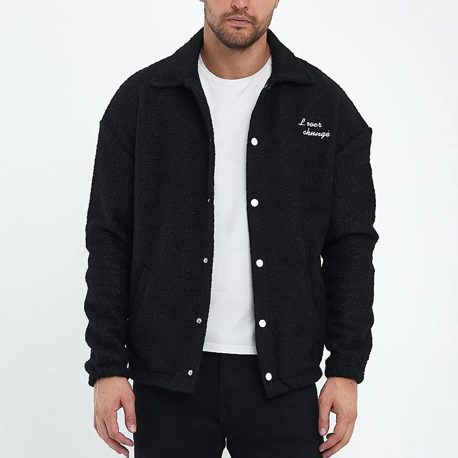 Flanneled with Logo Oversize Shirt Jacket // Black