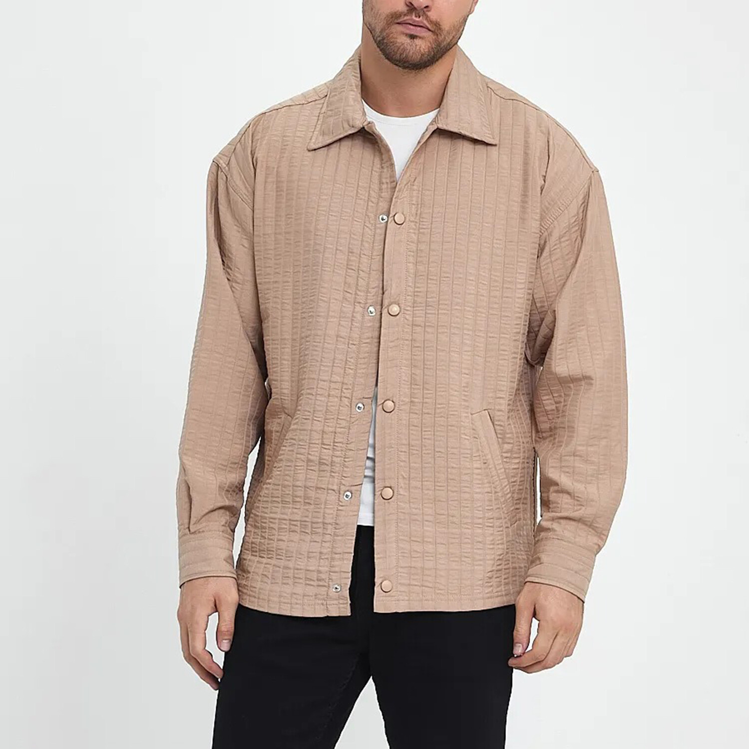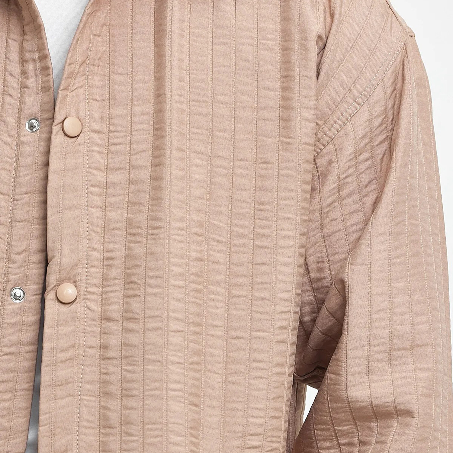 Striped Textured Oversize Shirt Jacket // Beige