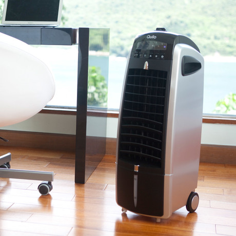 Unlike air conditioners which use refrigerant gases for their cooling power, the Quilo channels air through a moist honeycomb cooling pad. Fill up the water tray so that the warm air entering the Quilo will turn cool with a hint of moistness, fanning a fresh breeze into your home. For a brisker coolness, pack ice into the ice tray and the water flowing through the unit will be extra frigid.