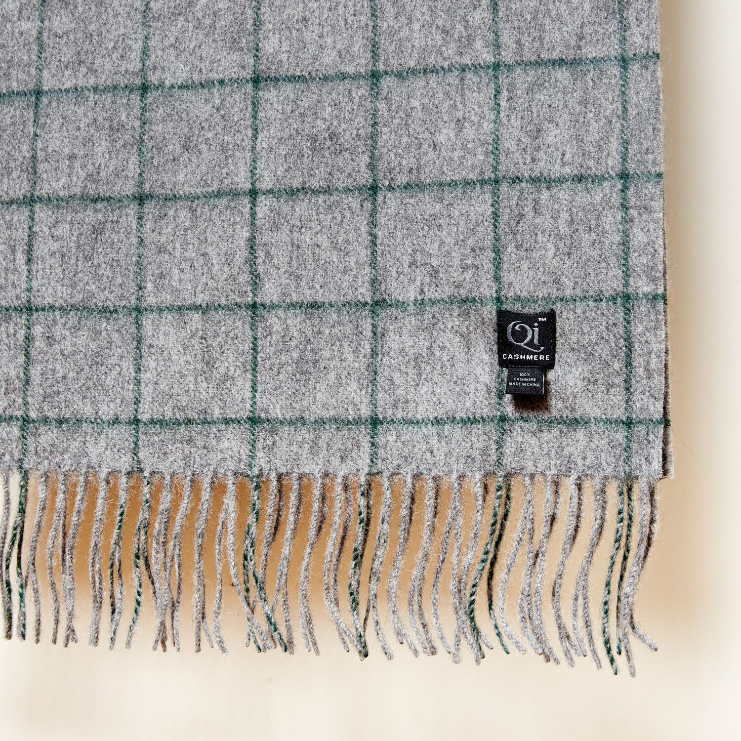 Cashmere Window Pane Woven Scarf // Gray + Green