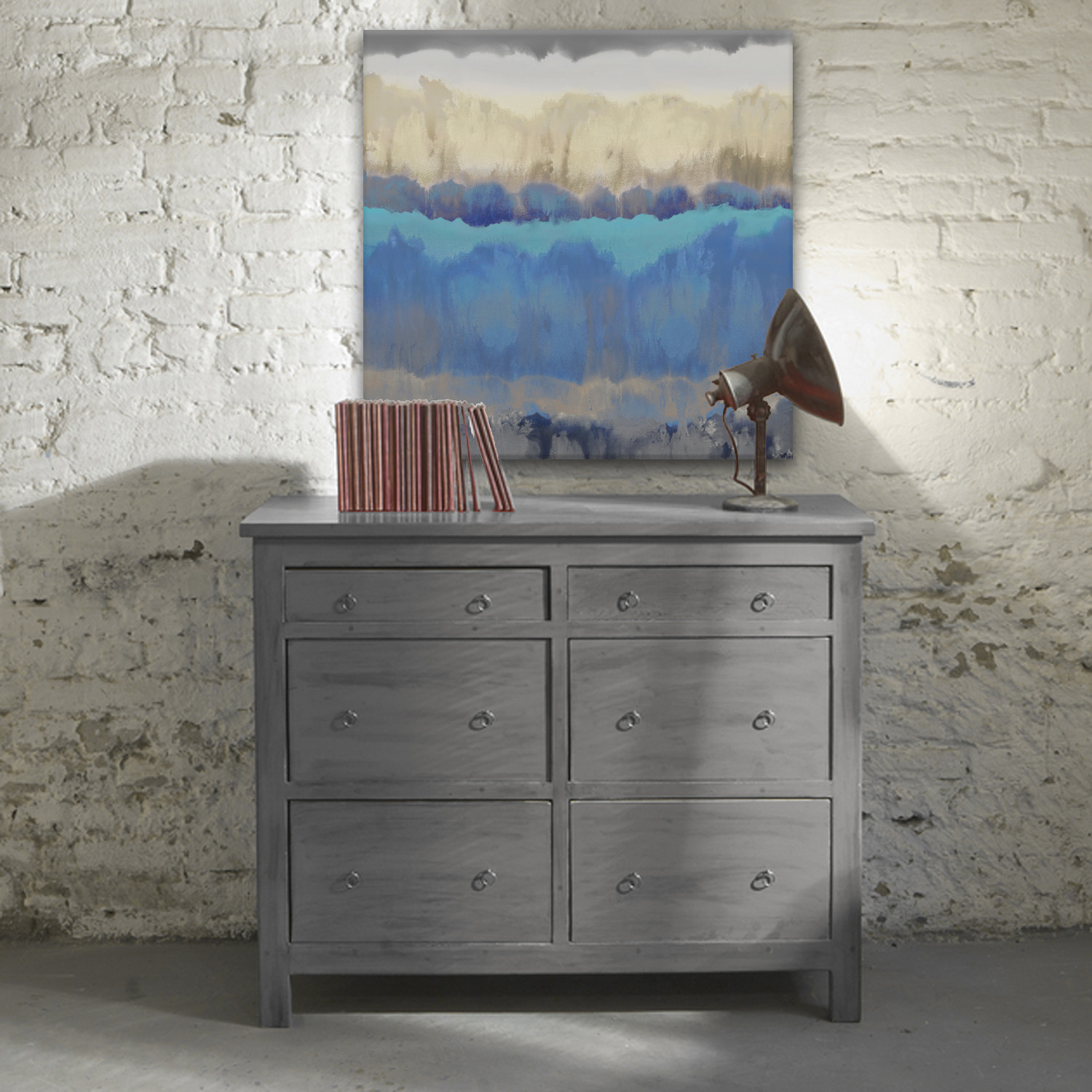 Abstract and minimal, this beautiful print features coordinated tones in swirling gradients that are inspired by the textures of sky, water and land, both on the surface and underneath. On any wall, it will convey dynamic motion and the subtle harmony of nature.