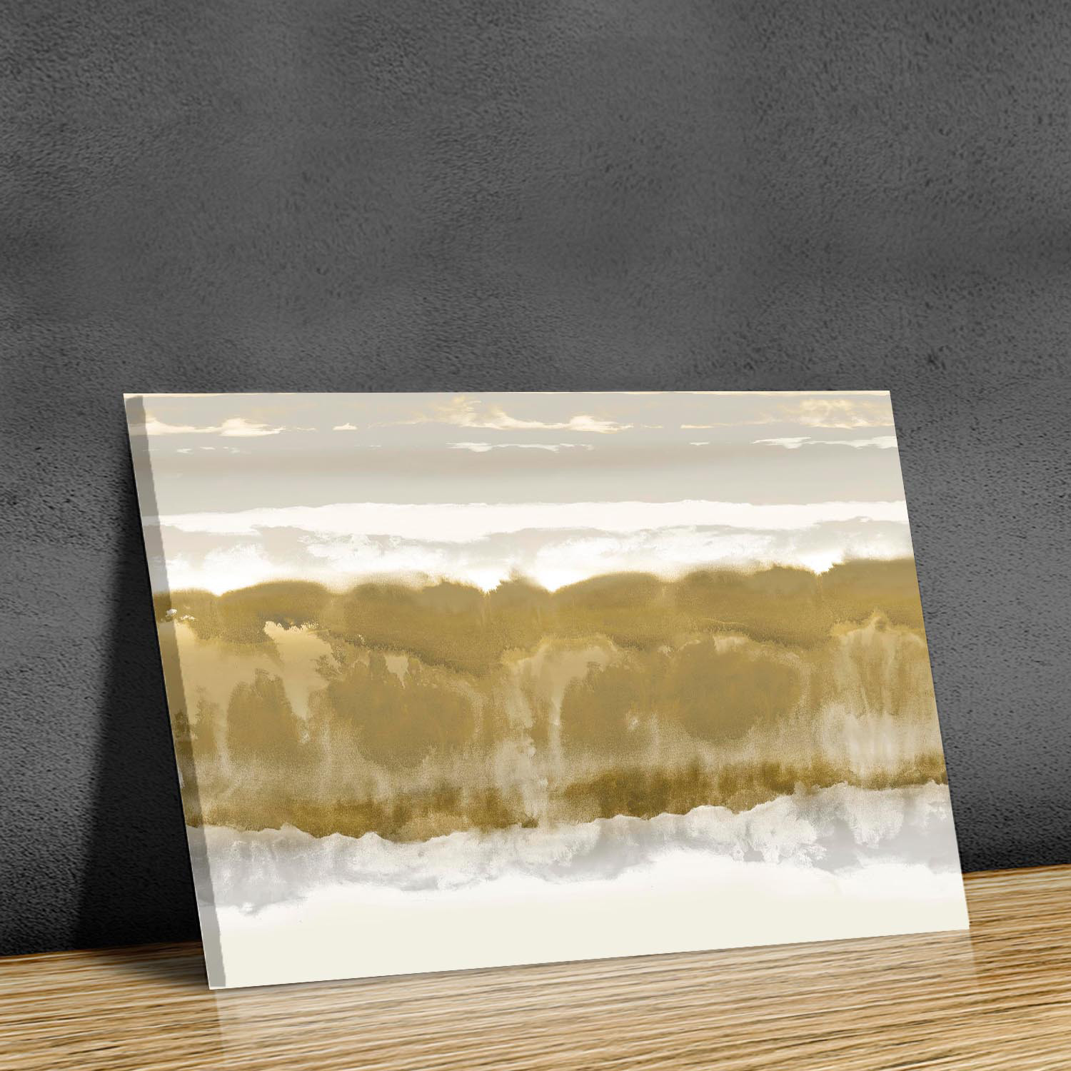 Abstract and minimal, this beautiful print features coordinated tones in swirling gradients that are inspired by the textures of sky, water and land, both on the surface and underneath. On any wall, it will convey dynamic motion and the subtle harmony of nature.