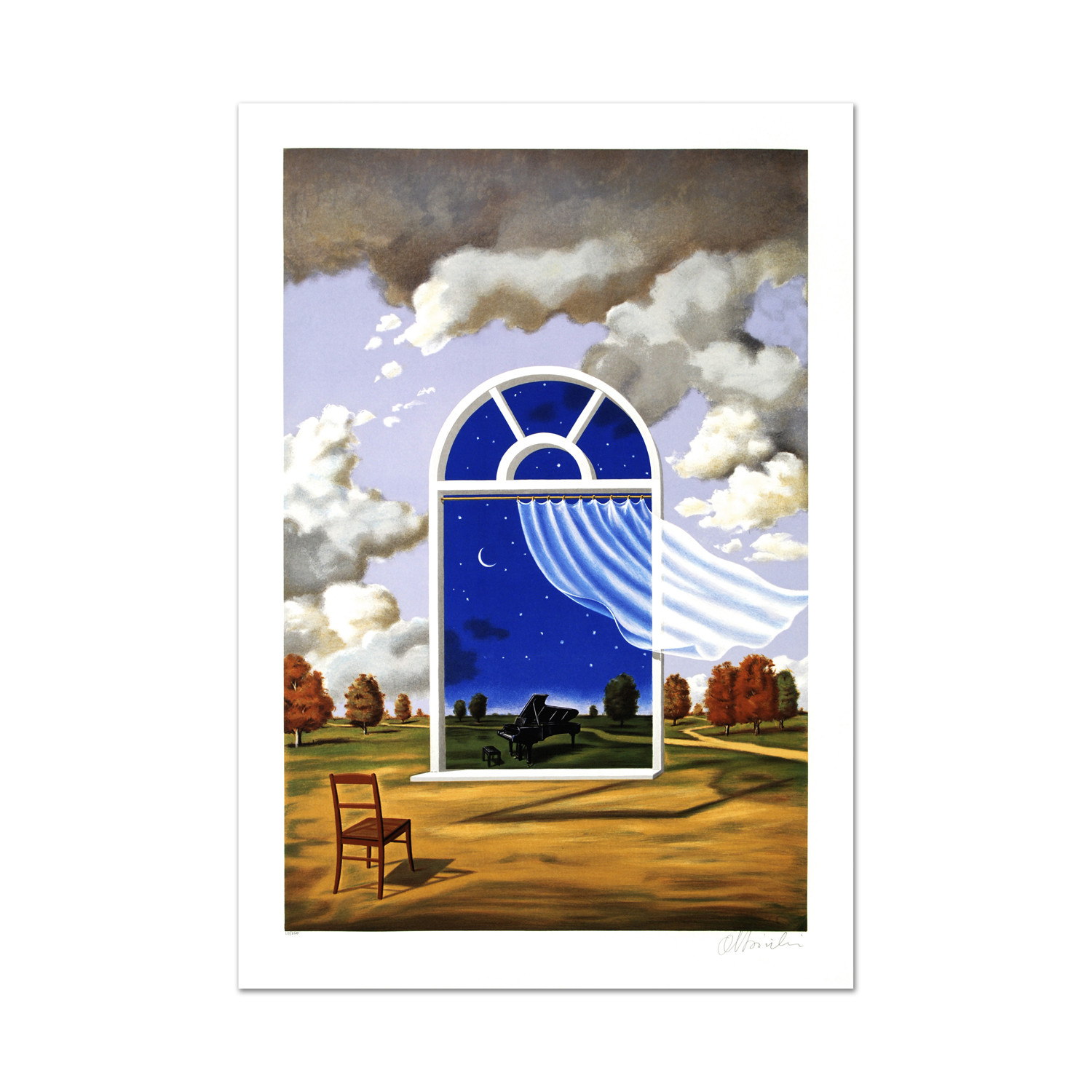 Nocture in E Flat Major is a limited edition lithograph on museum quality deckle-edge paper, numbered and hand signed by Rafal Olbinski. You'll love the surreal landscape-within-a-landscape that this lithograph portrays, giving you one gorgeous peek into two totally separate worlds.