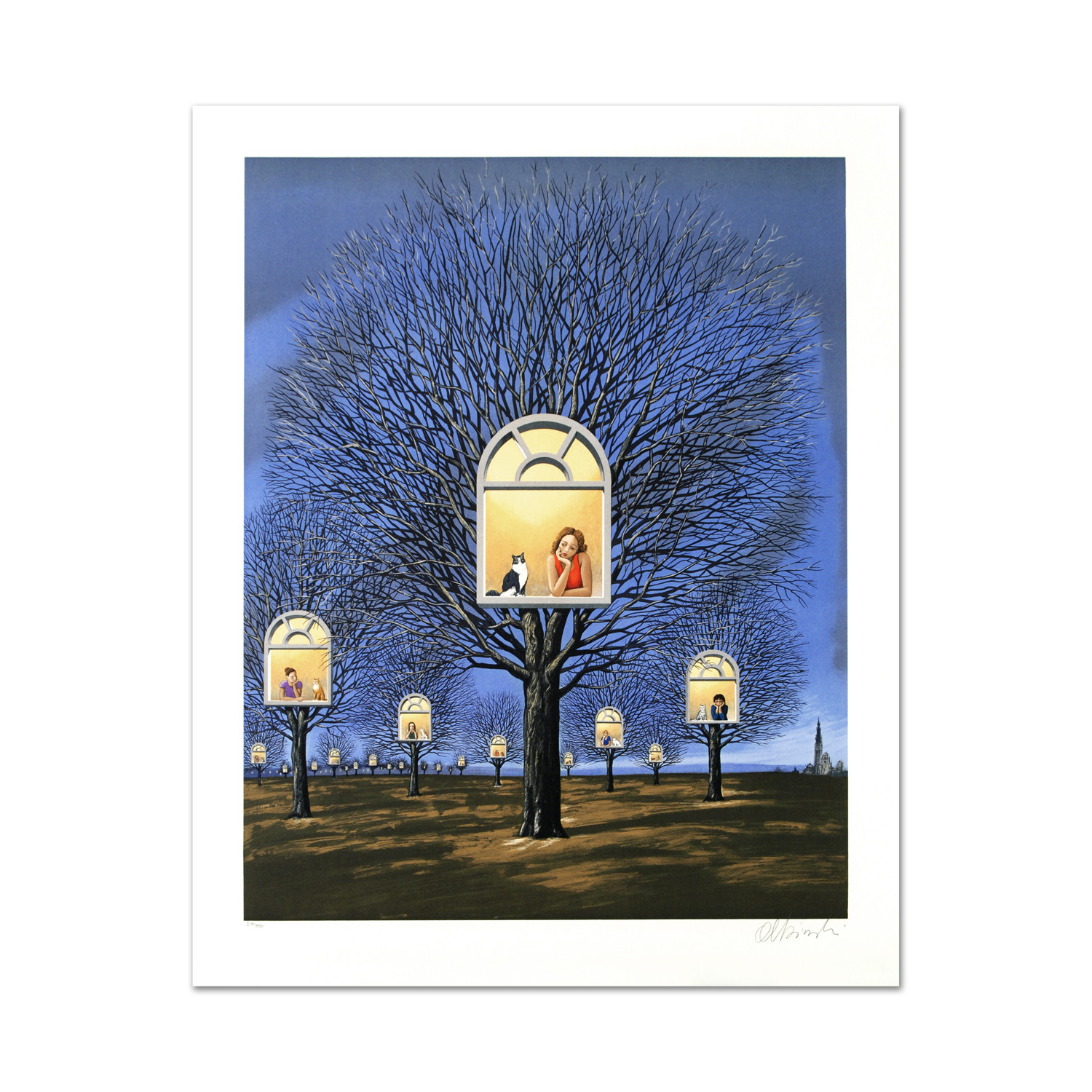 Suspended Promises is a limited edition hand pulled original lithograph on museum quality deckle-edge paper, numbered and hand signed by Rafal Olbinski. This lithograph was created on a rare antique Marinoni Voirin French press that dates back to the 1800's. It provides highly pigmented inks that will resist fading and preserve the integrity of the print for more than a lifetime. This process is the most elaborate, costly and effective way to reproduce art while maintaining the brilliance and accuracy of the original creation.