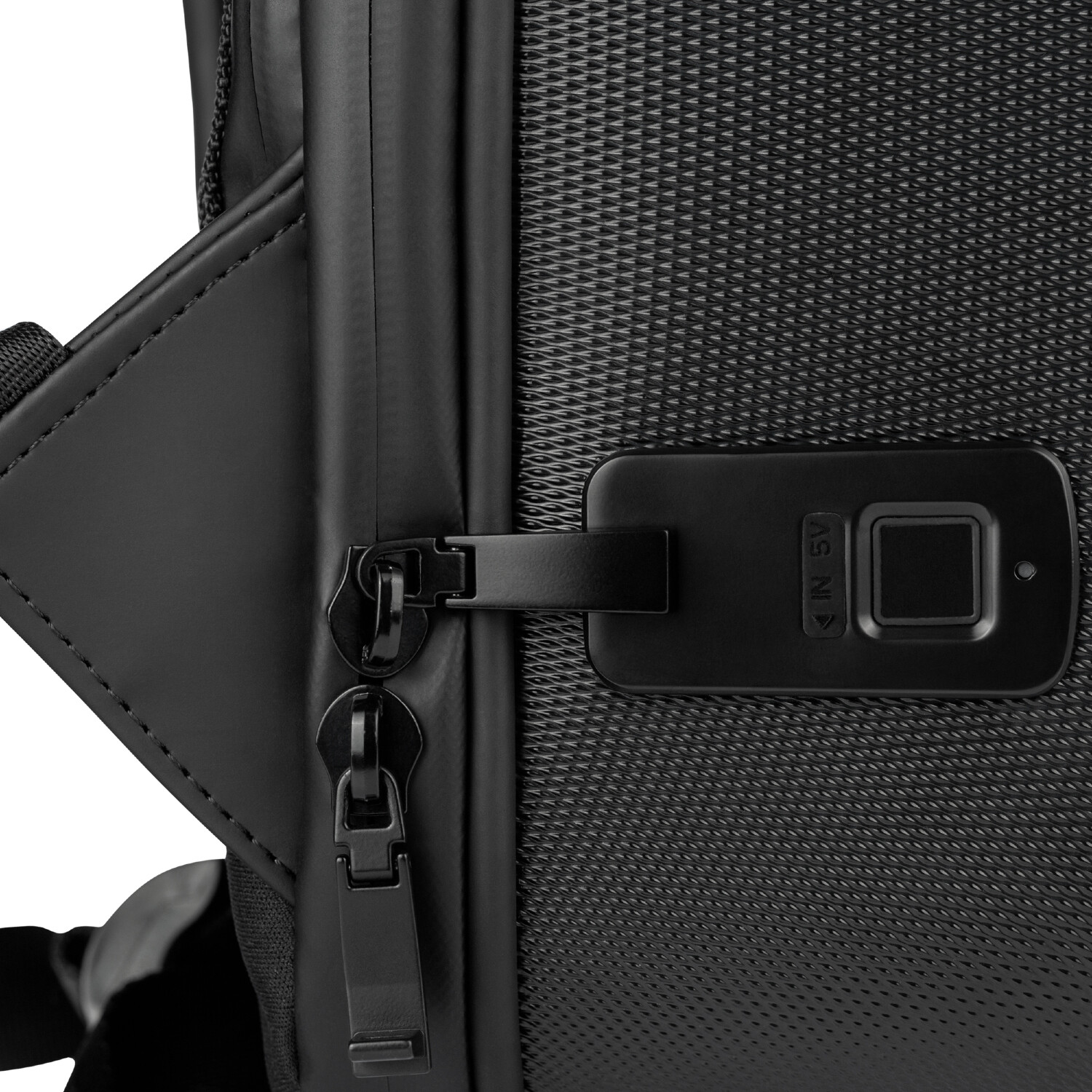 The Rainsberg Classic is engineered for organization, safety, and security. Perfectly sized for everyday use, this sleek backpack meets standard carry-on requirements with a dedicated sleeve to hold your laptop. Charging your phone or tablet can be done via the included USB-C adapter. The addition of a fingerprint touch lock ensures all your valuables remain protected while you're traveling.