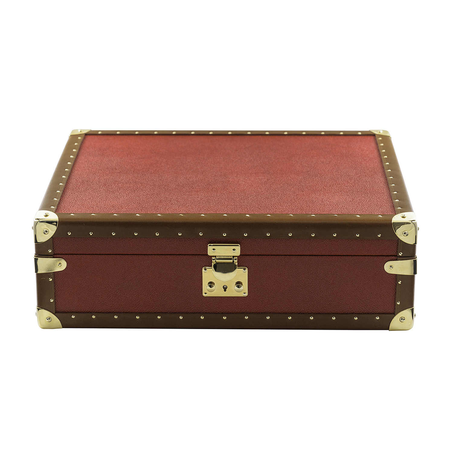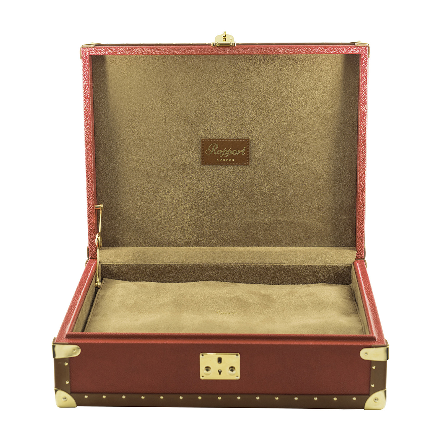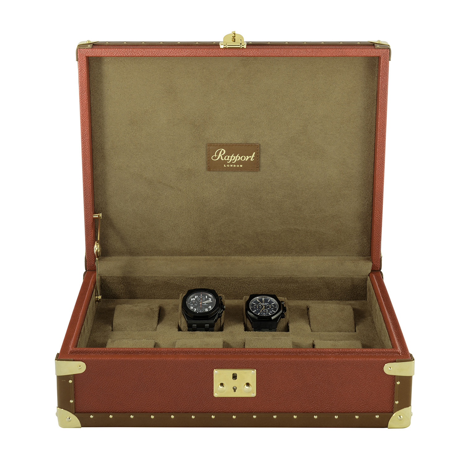 The Berkeley Watch Case features a luxurious leather covering with a suede interior lining. It fits up to 8 watches in individual compartments, safely secured with an integrated lock and key.