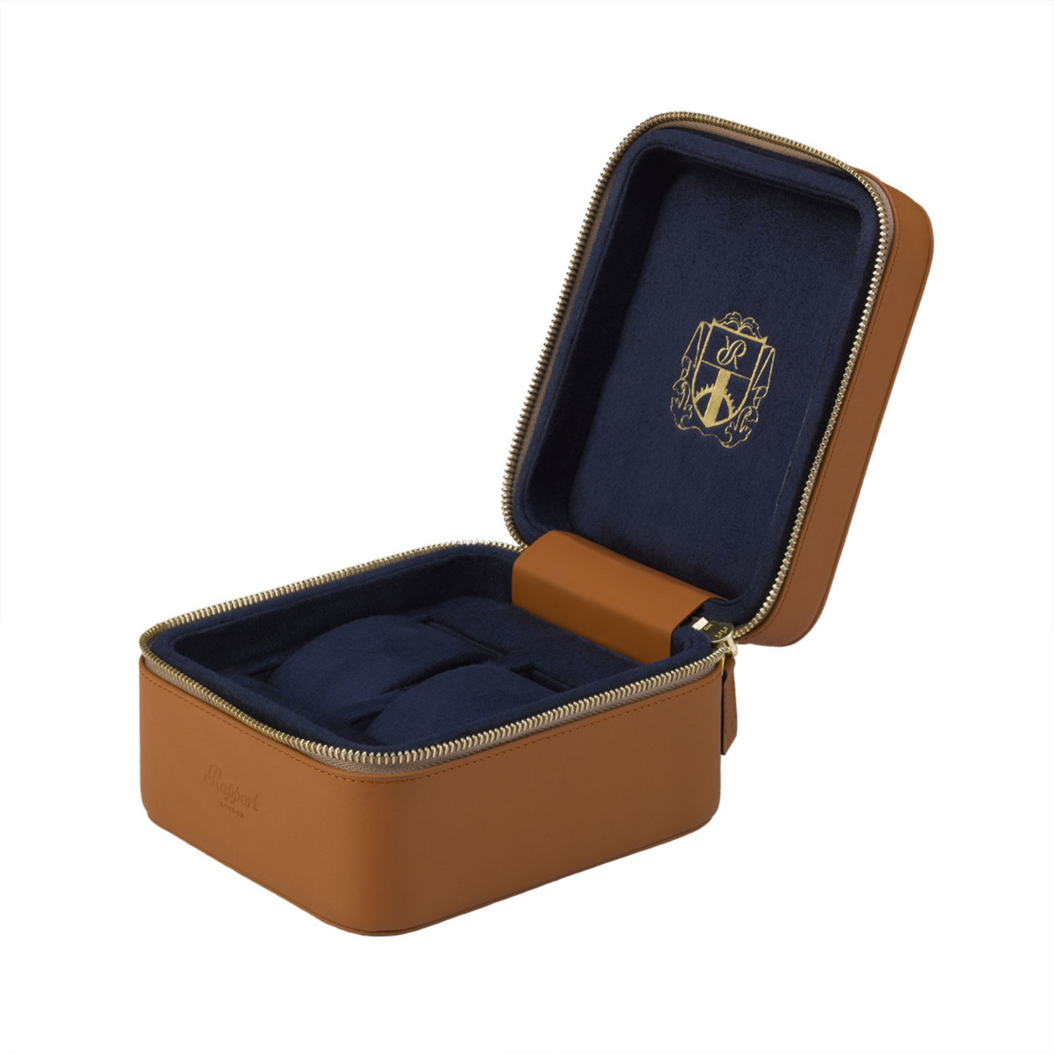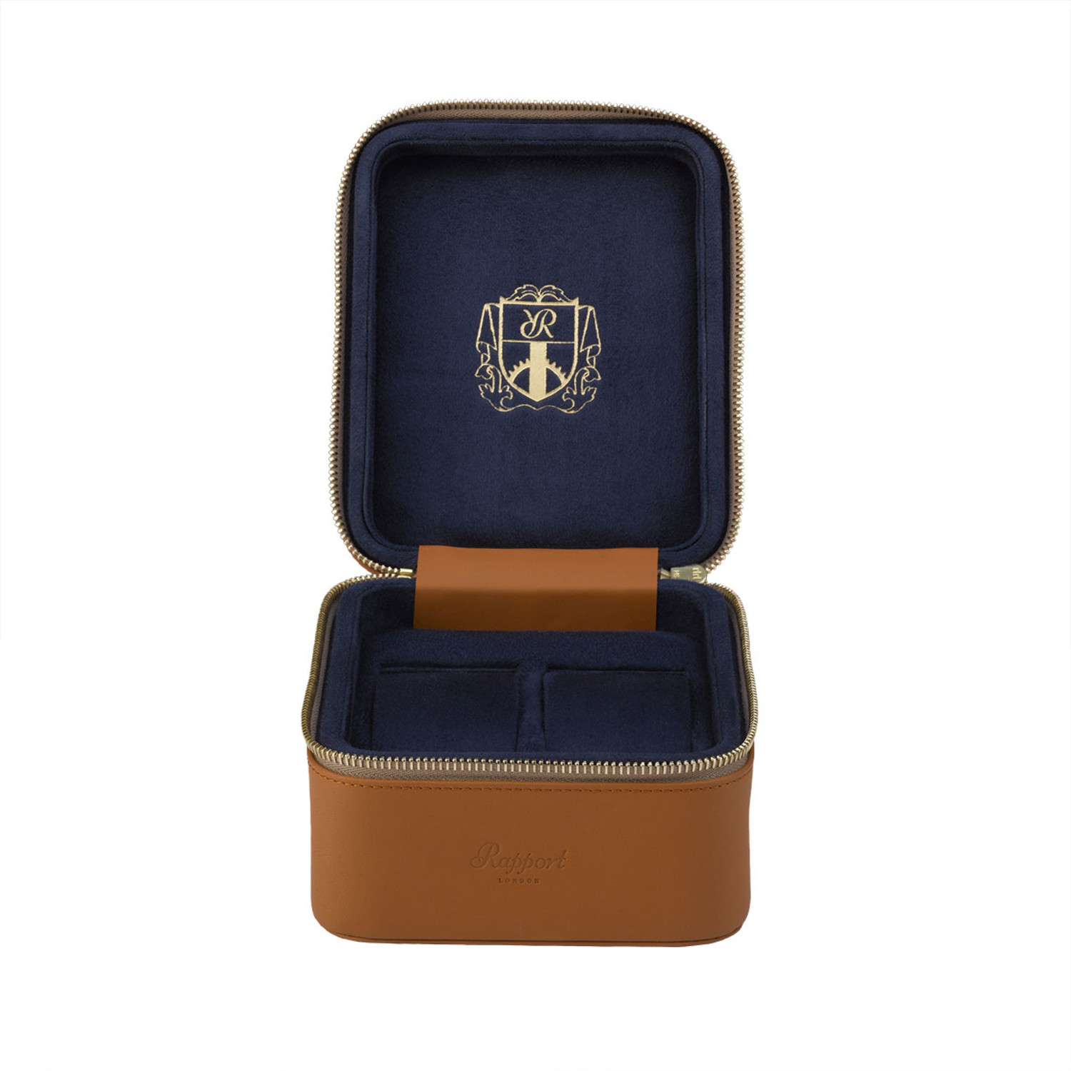 This Hyde Park Watch Case is a robust zip case handmade from premium leather with finely stitched seams. Featuring a luxurious suede lining and removable soft cushions in separate compartments, this beautiful piece securely protects up to two watches.