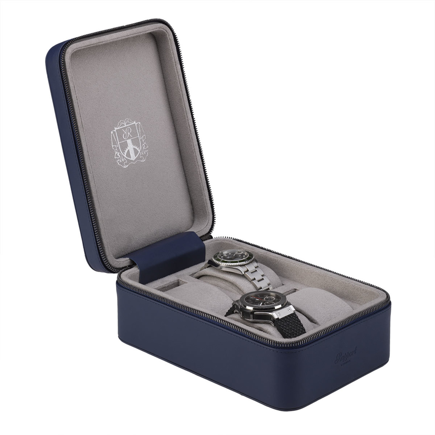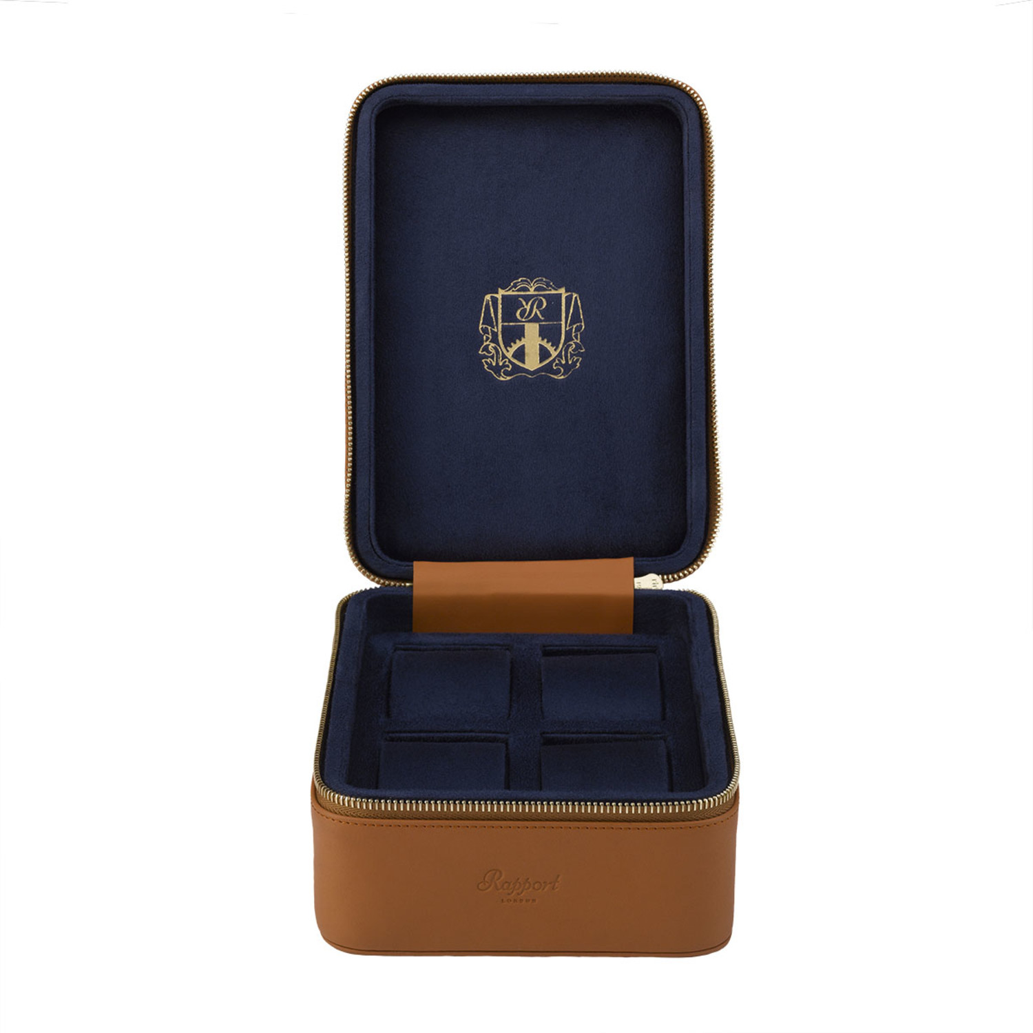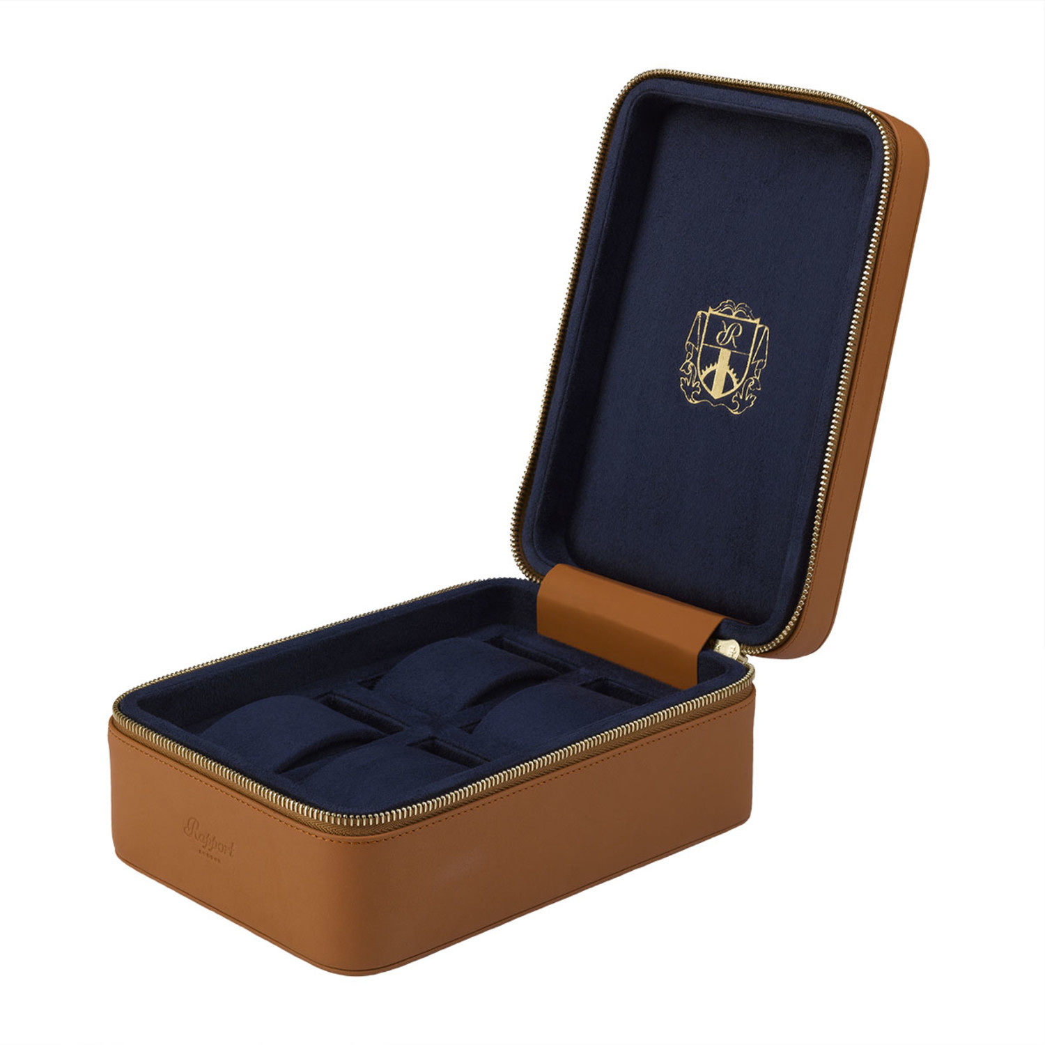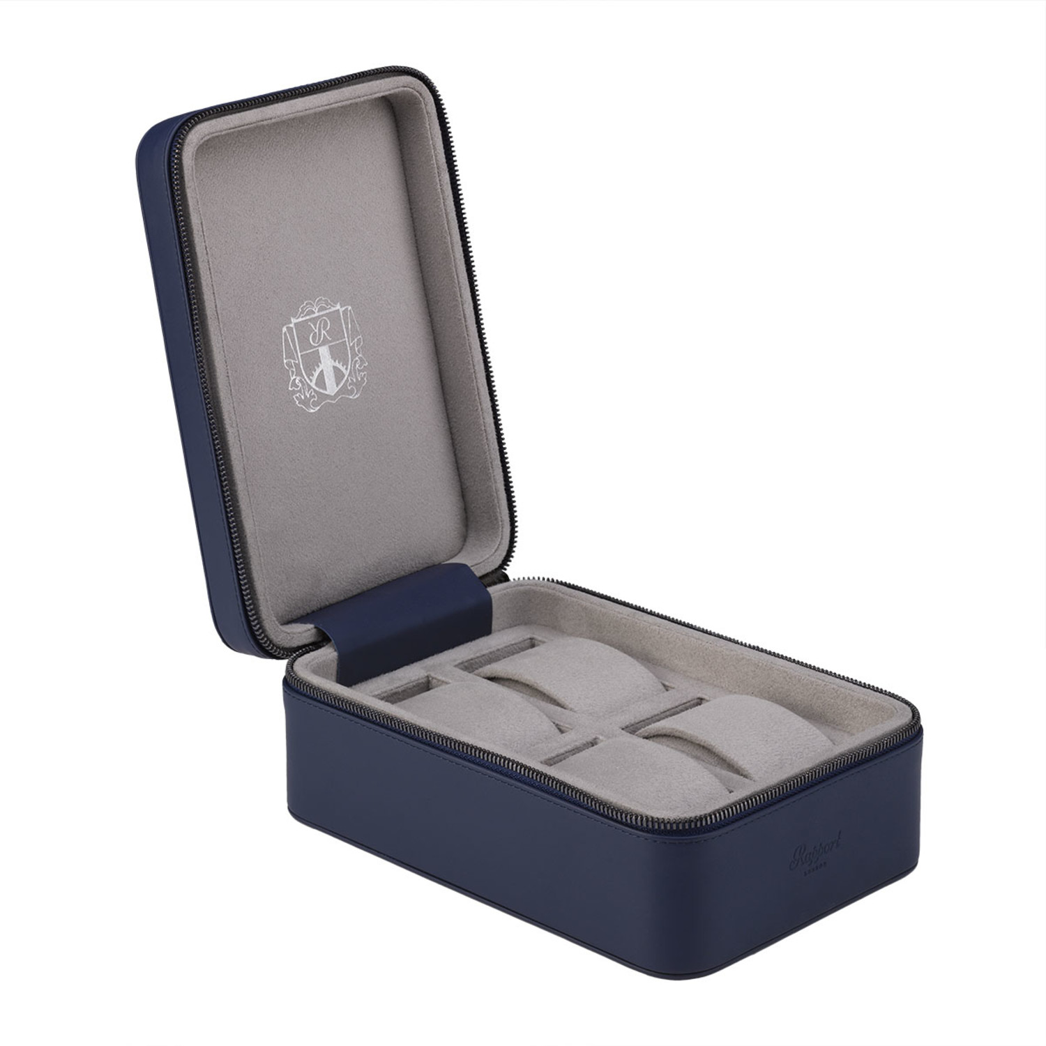 This Hyde Park Watch Case is a robust zip case handmade from premium leather with finely stitched seams. Featuring a luxurious suede lining and removable soft cushions in separate compartments, this beautiful piece securely protects up to four watches.