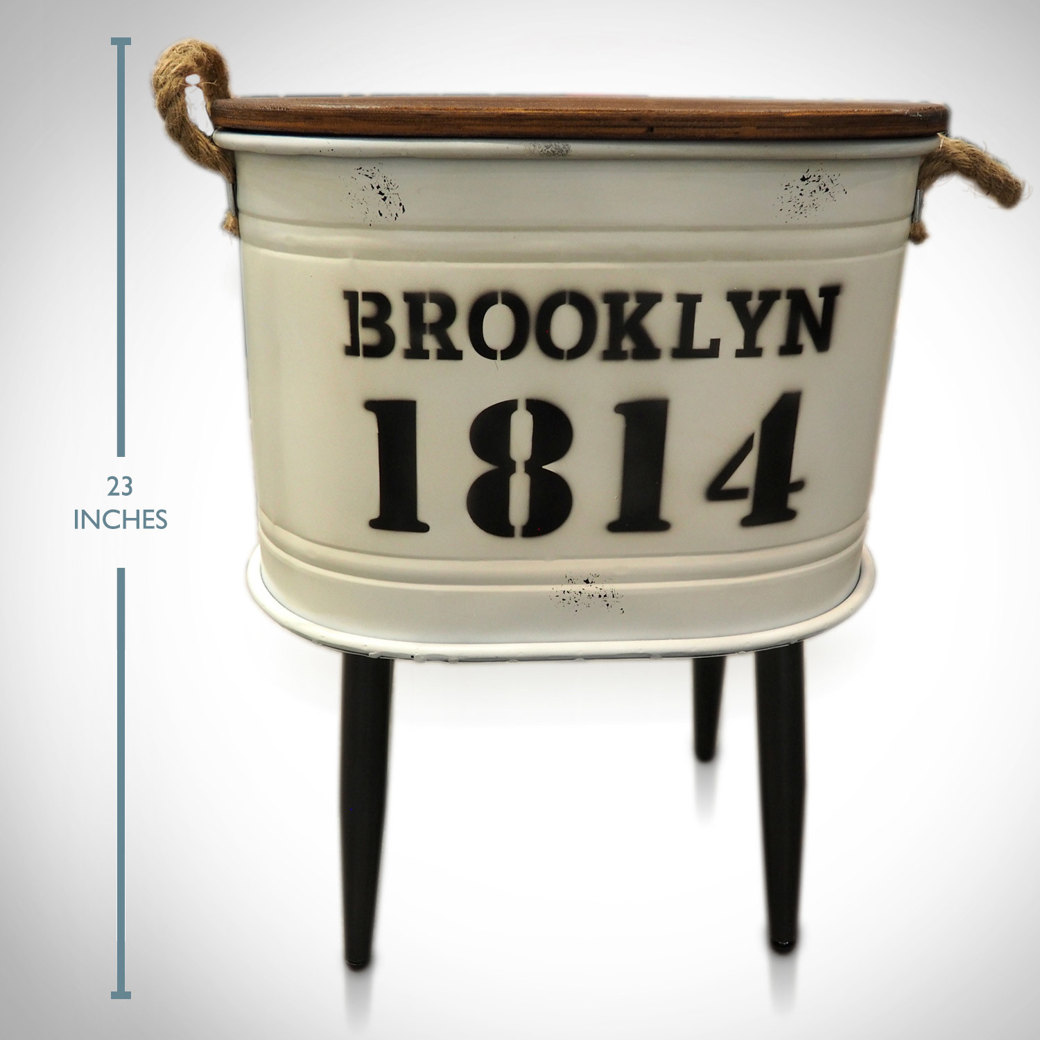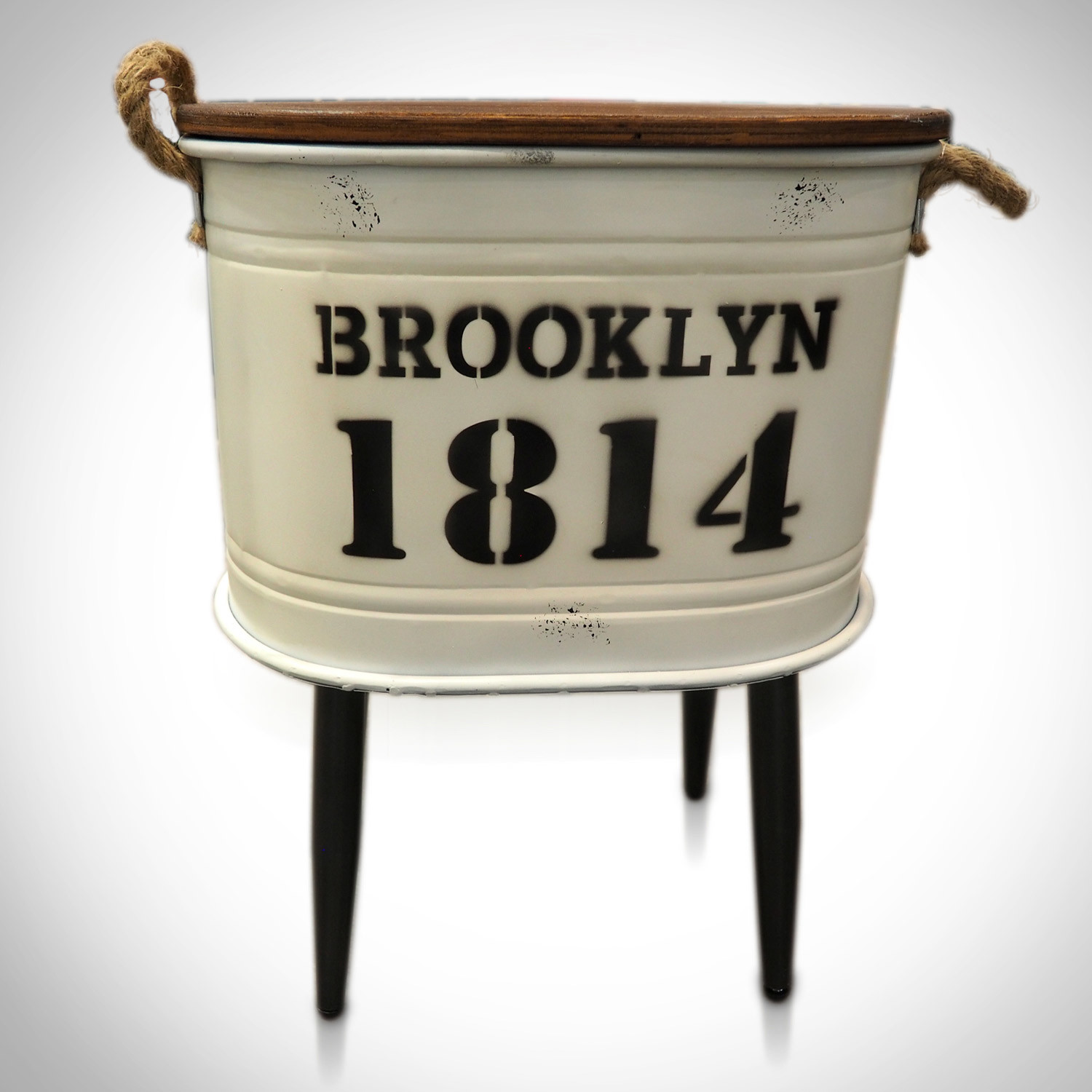 Decorate your business, home, or office with this 1814 Brooklyn New York Barrel Stool. It's handmade and hand-painted, with a beautifully weathered finish, and removable wood seats for additional storage - plus rope handles for easy maneuvering. The used-and-abused vintage patina makes it the perfect addition to your unique decor.
