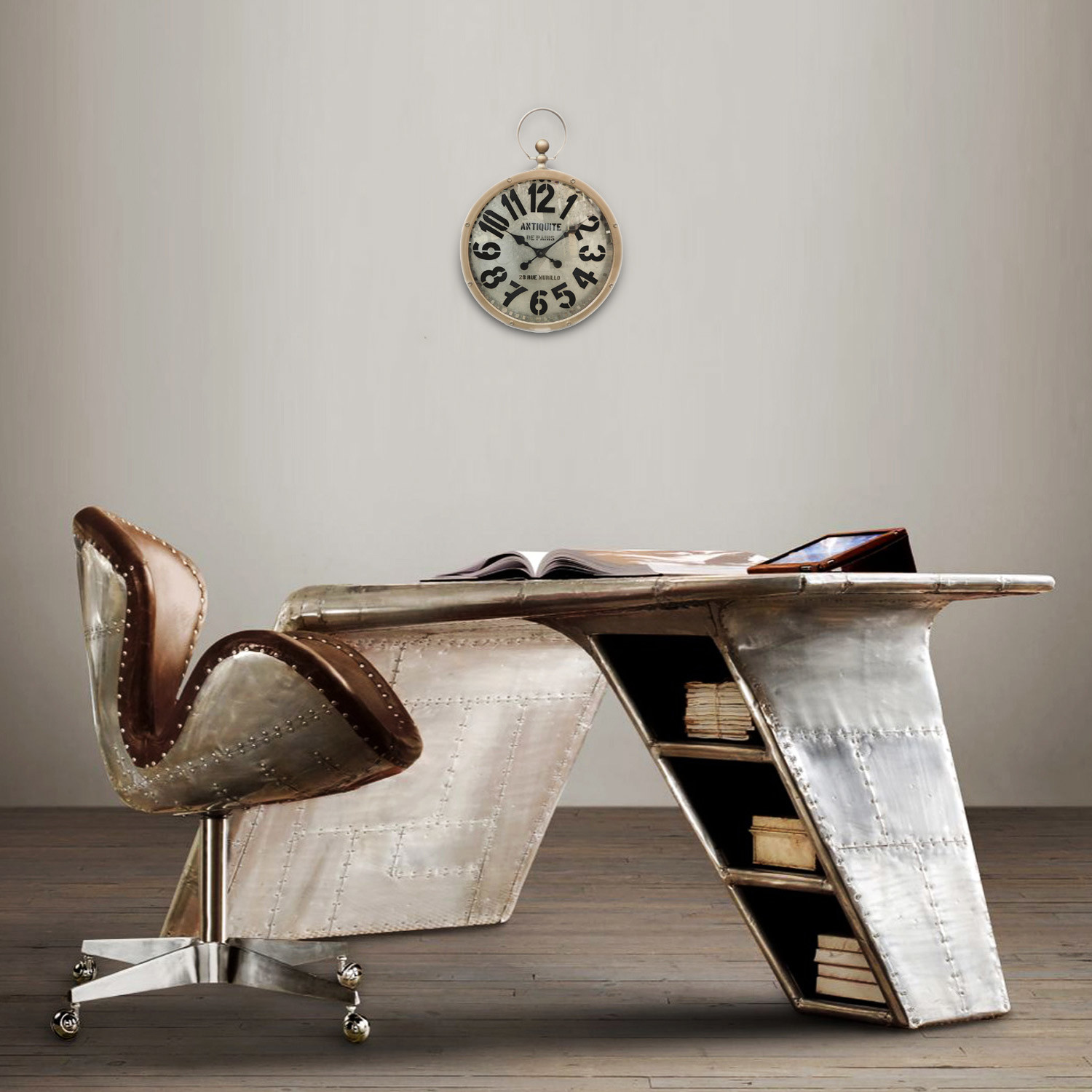 Decorate your business, home, or office with this weathered bolted metal frame Antiquite De Paris-28 Rue Murillo Clock. This piece of industrial art at its best has a great vintage patina, with a used and abused finish that's the perfect addition to your unique decor.