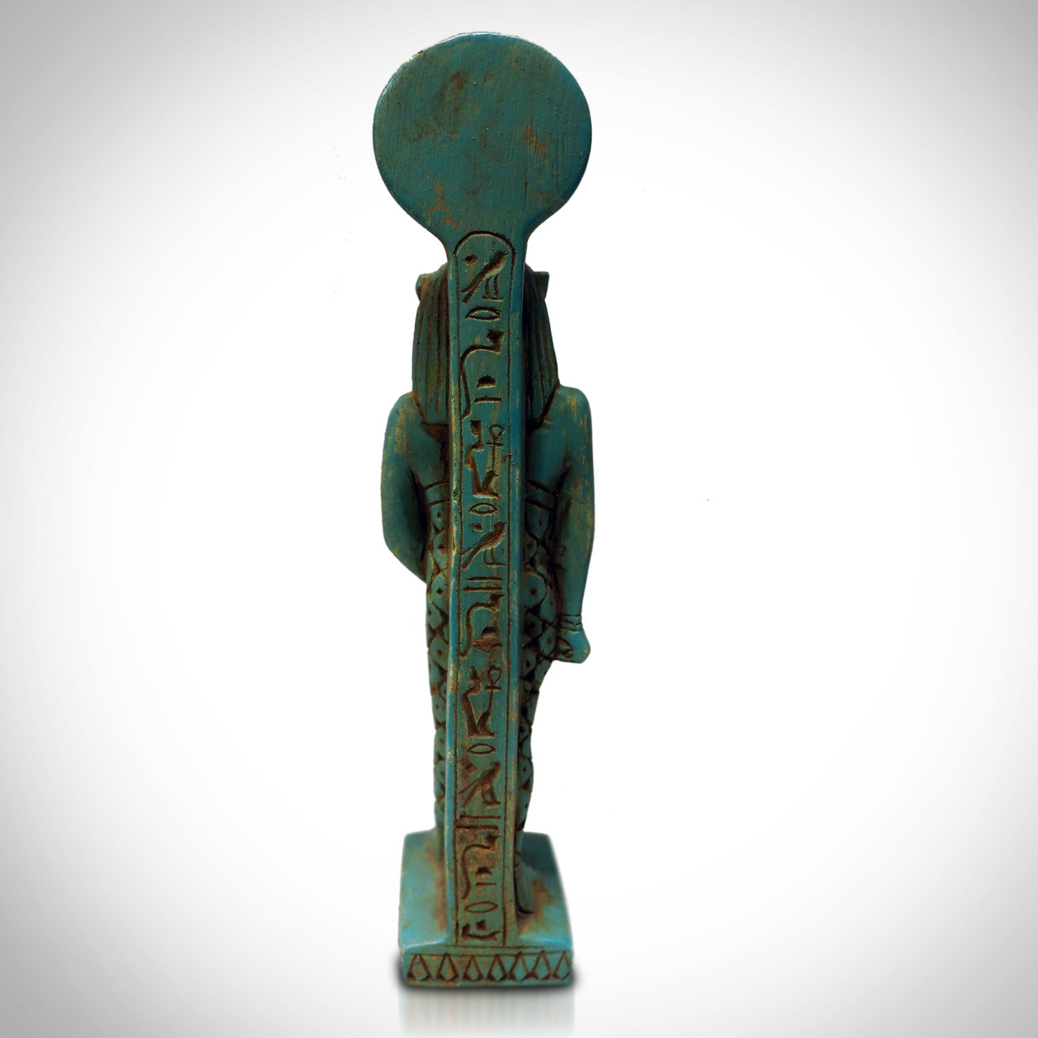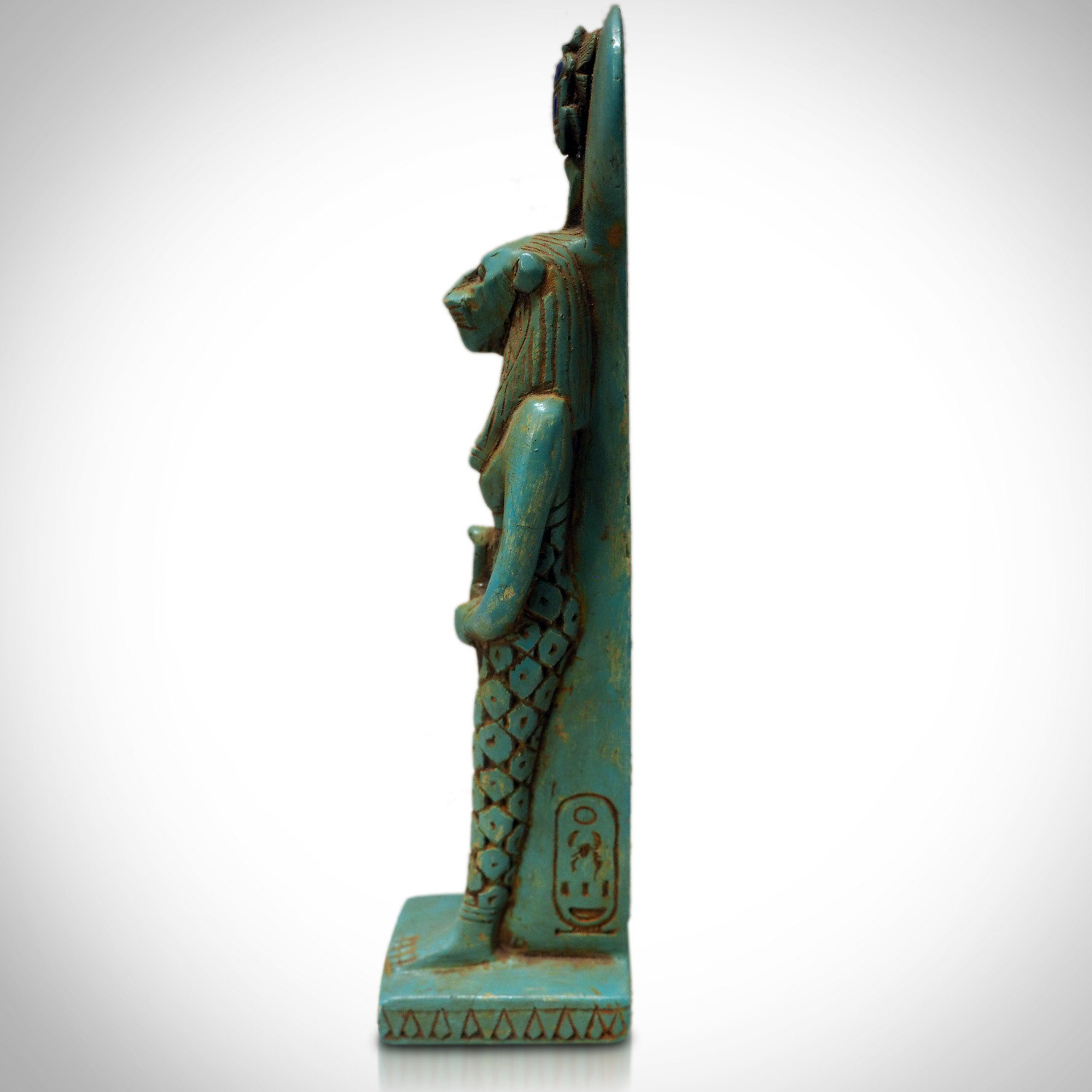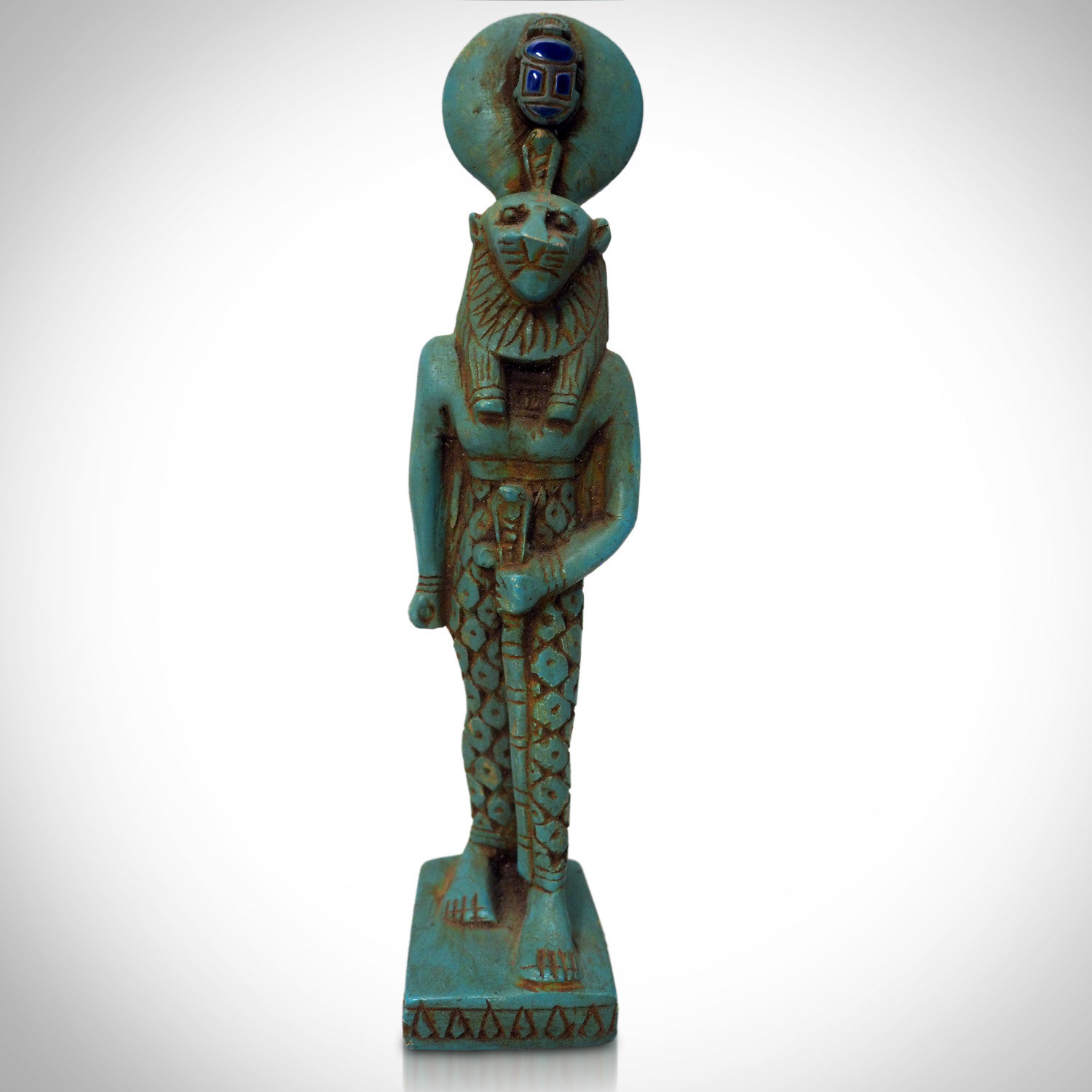 Sekhmet was associated with destruction. According to myth, she was the fiery eye of Ra, which he sent against his enemies - As the cobra on the brow of the king, rearing to protect him. Her name means 'she who is powerful'. She is commonly represented as a lioness-headed woman because the Egyptians observed that it is the female lion who is the hunter.