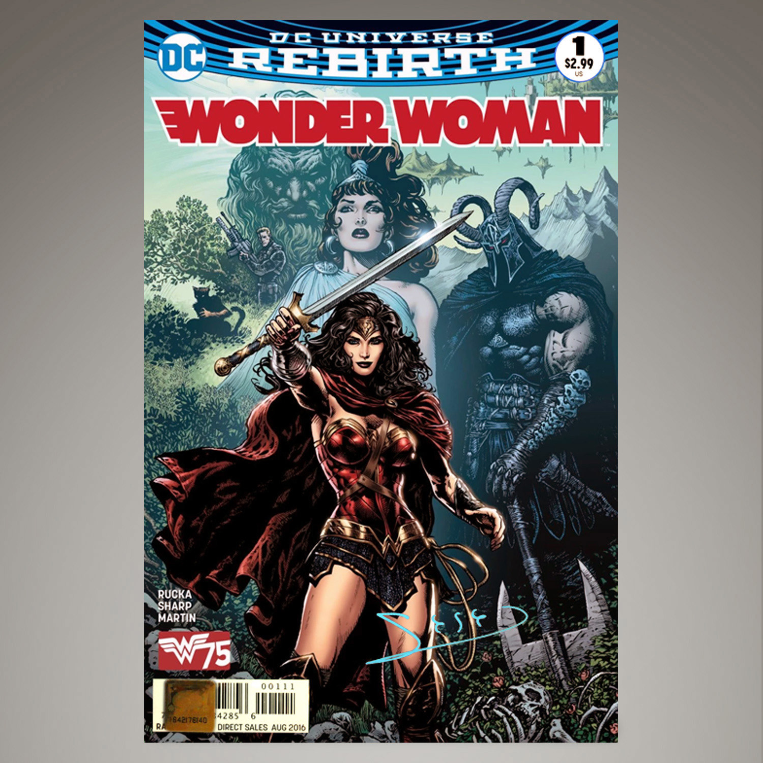 Pay homage to one of the most iconic DC characters, Wonder Woman, with this gallery framed display, featuring a Wonder Woman DC Universe Rebirth first print Comic Book - Wonder Woman 75th Anniversary that has been hand-signed by the stunning Gal Gadot.