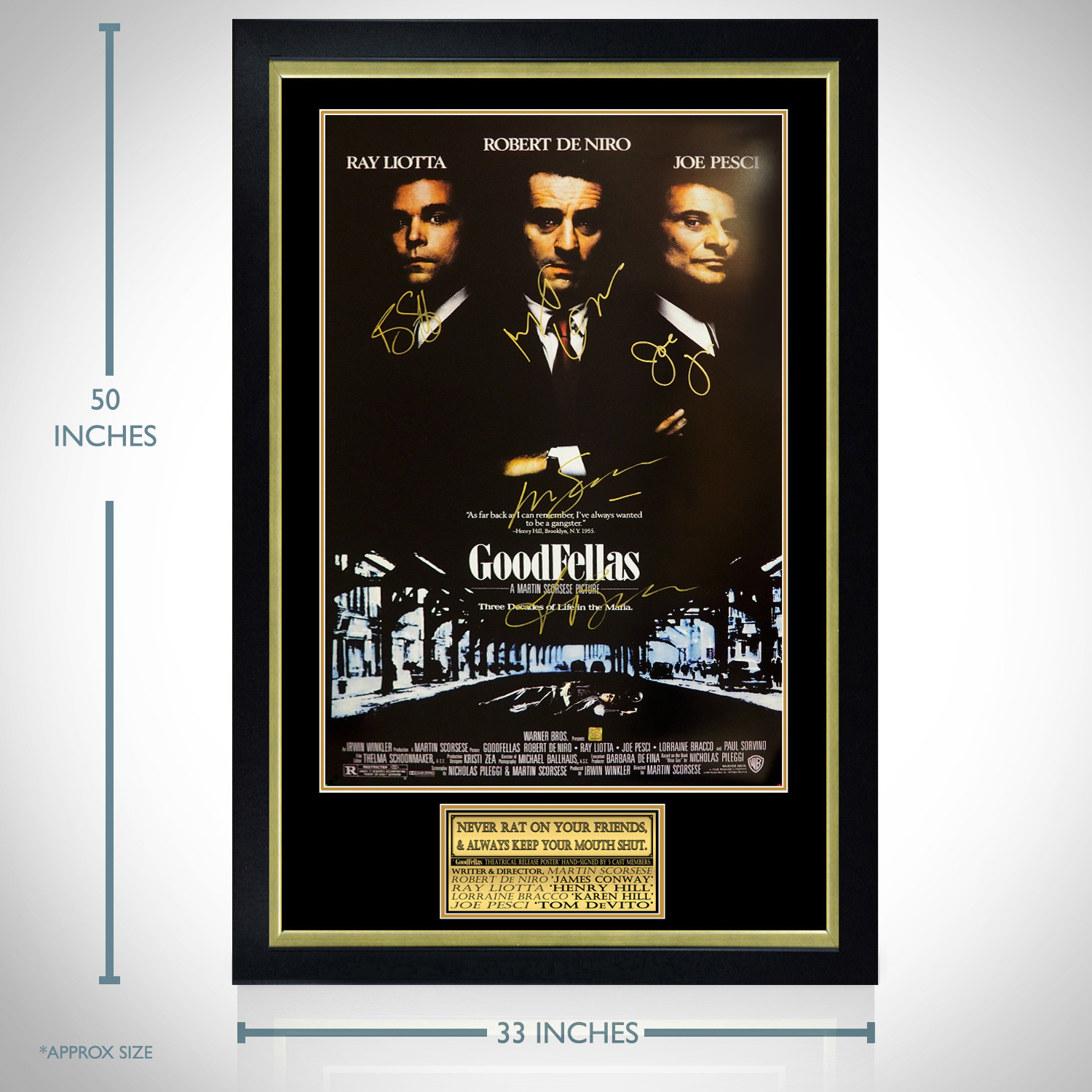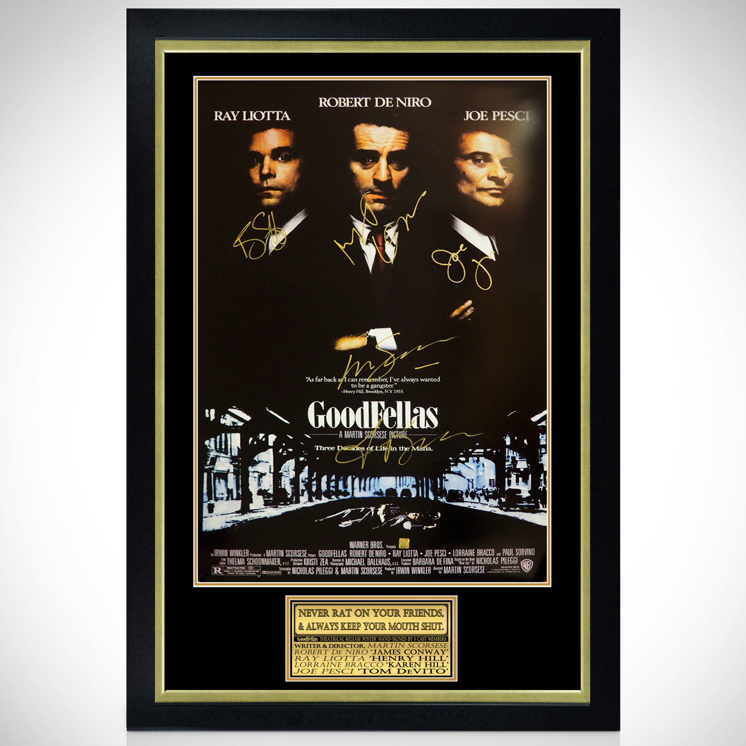 — Hand Signed by Robert De Niro, Ray Liotta, Joe Pesci, Lorraine Bracco & Martin Scorsese.