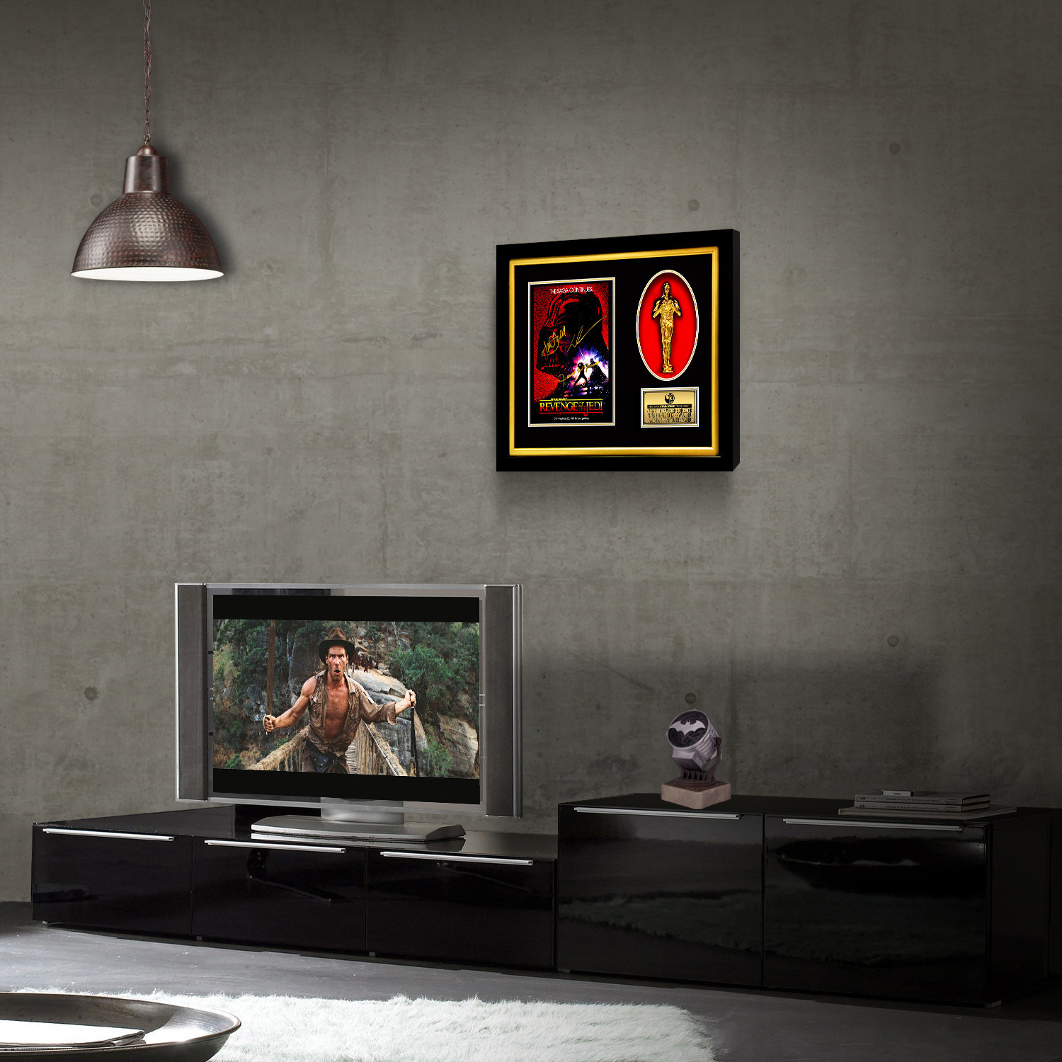 Pay homage to Revenge of The Jedi and one of the most iconic and influential Movie sagas of all times, Star Wars, with this gallery-framed hand signed photo by actors James Earl Jones, Mark Hamill & writer & director George Lucas. The gallery frame also features a gold plated accurate Oscar prop.