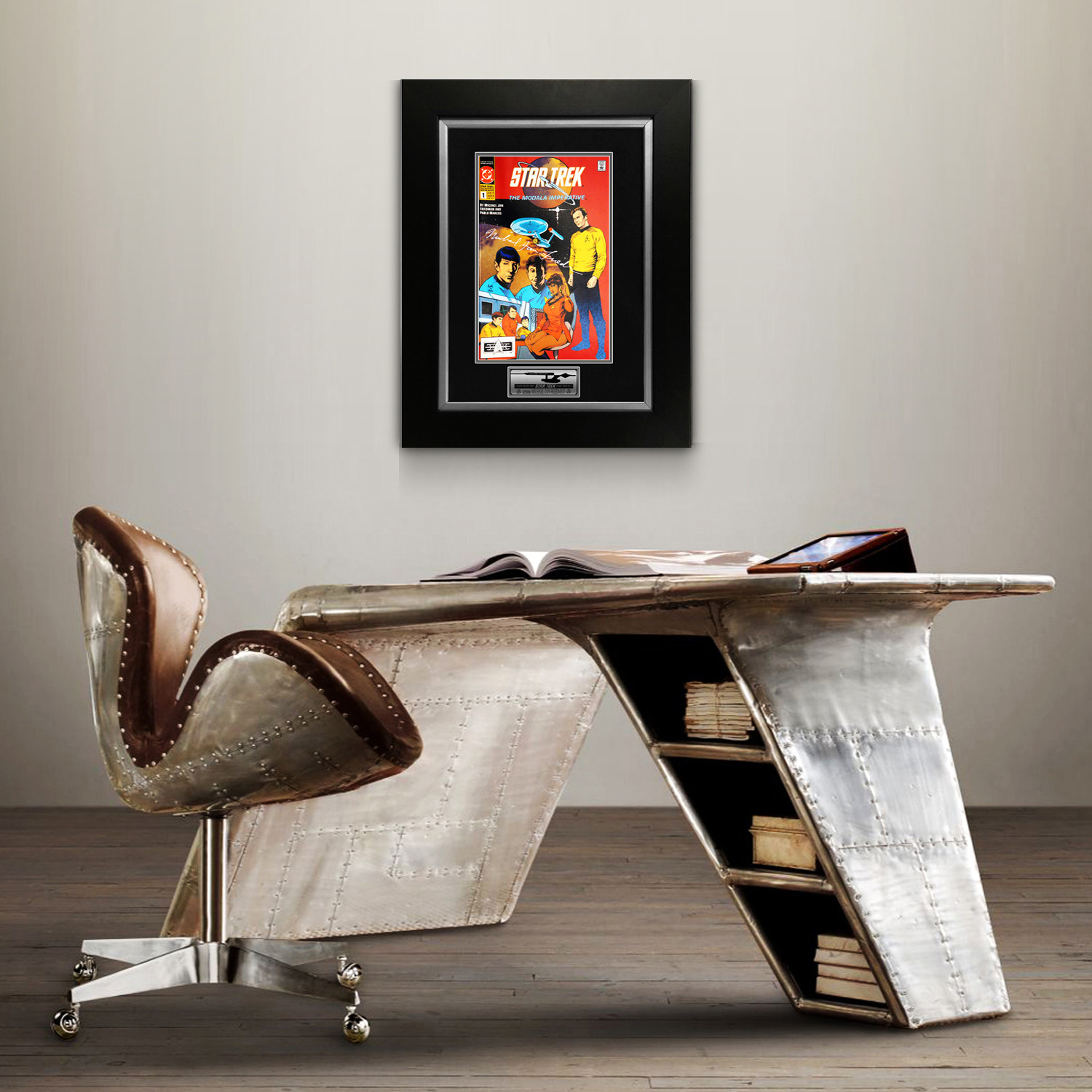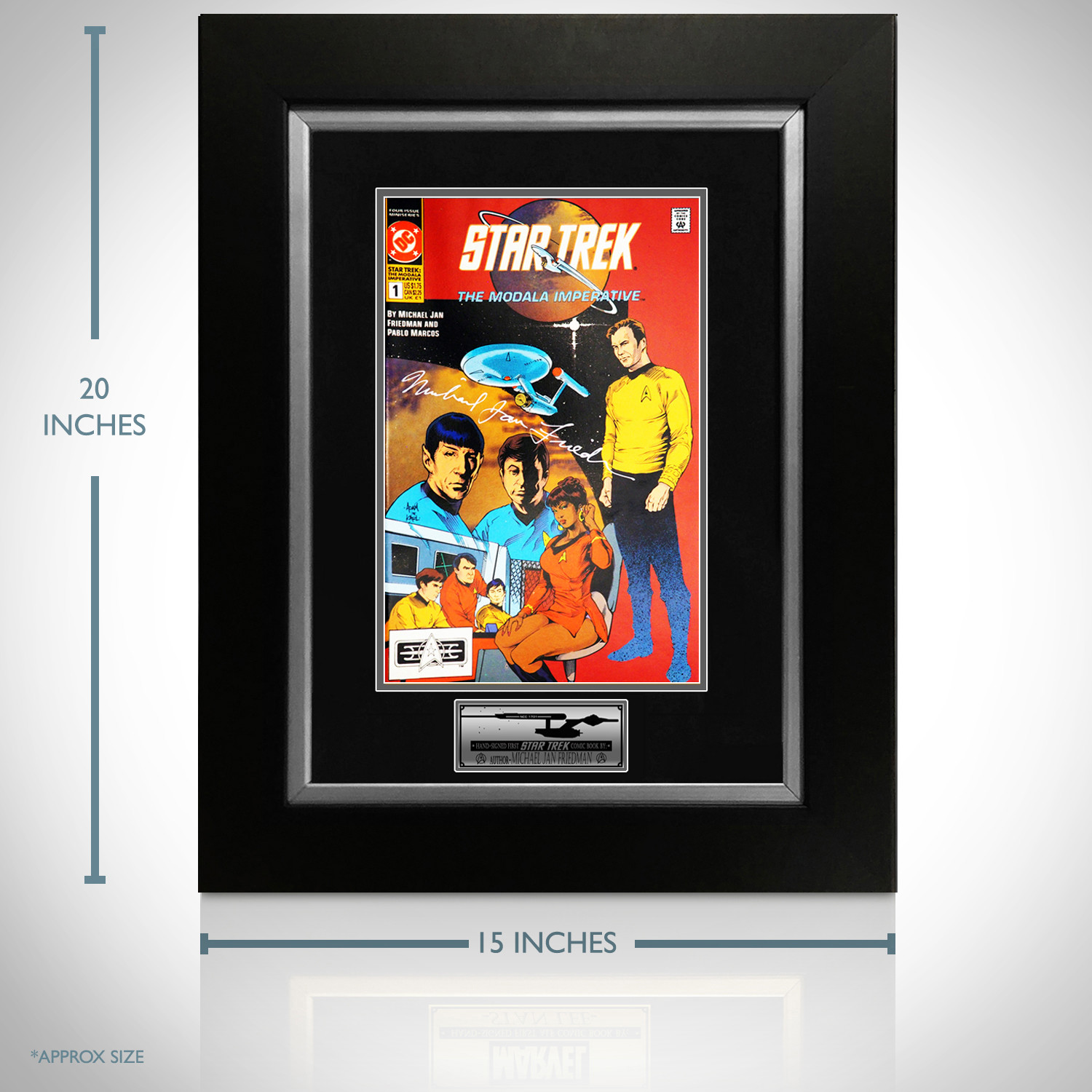 Showcase your love for Star Trek with this VIP framed display, featuring a Star Trek comic book hand signed by Michael Jan Friedman. The double matted display is mounted in a high-quality wood frame and finished with protective glass to keep it looking pristine. The customized descriptive metallic plaque, in addition to the detailed finishing and openings, add to the elegant, gallery quality look. Complete with a certificate of authenticity, it’s the perfect addition to any comic book lover’s collection.