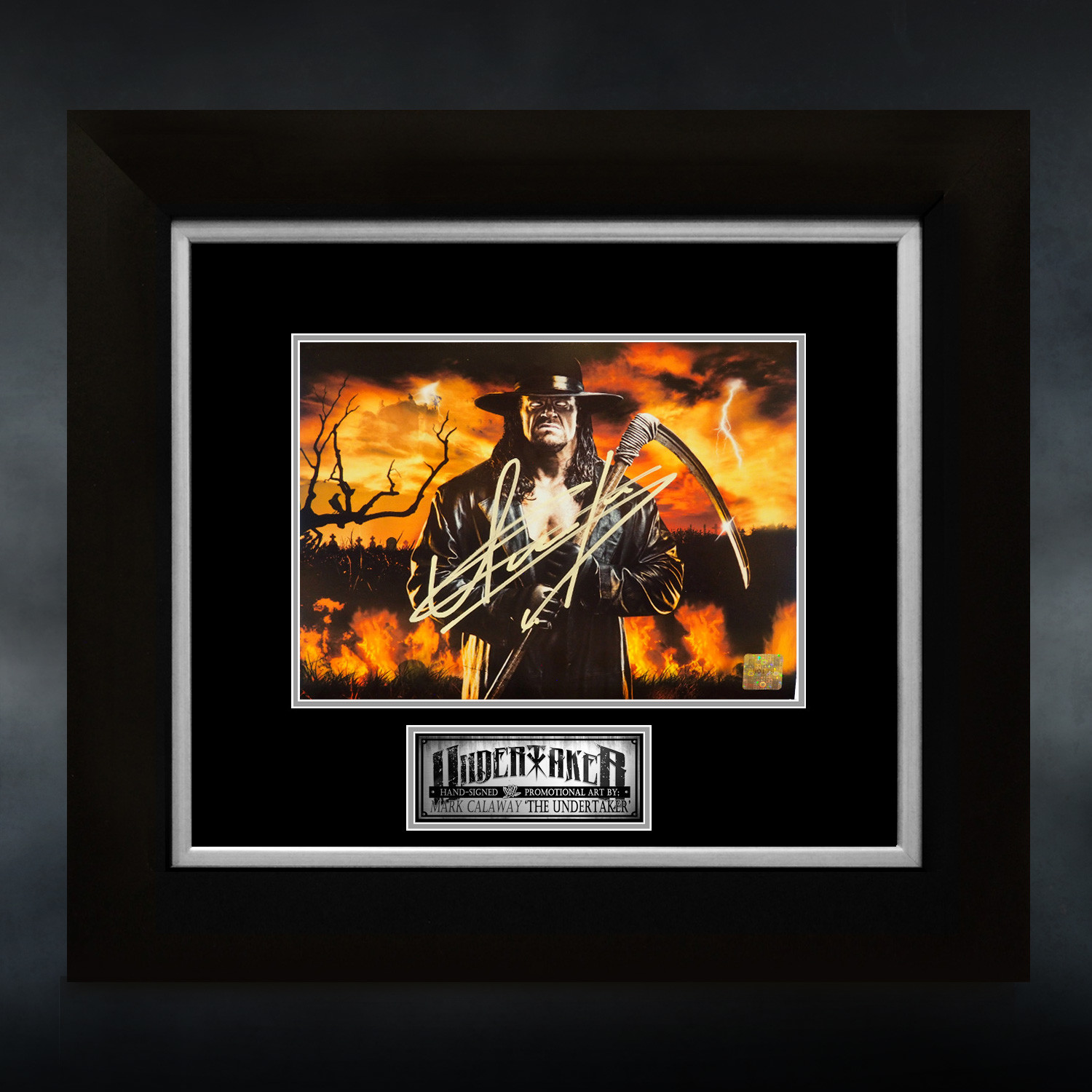 Pay homage to The Undertaker and one of the most iconic wrestlers of all times with this gallery-framed hand signed photo by legendary wrestler Mark Calaway.